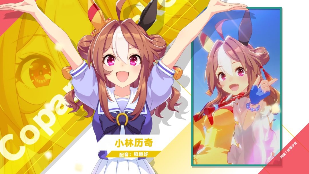 全国的新人训练员们,来认识一下那些在特雷森学园和我们一起实现梦想的学生吧! 性格开朗活泼,公认的幸运女孩“小林历奇”。在风水领域造诣极深,具备真才实学。不仅是日常生活,也会将风水知识灵活运用于训练和比赛之中。 配音:稻垣好
