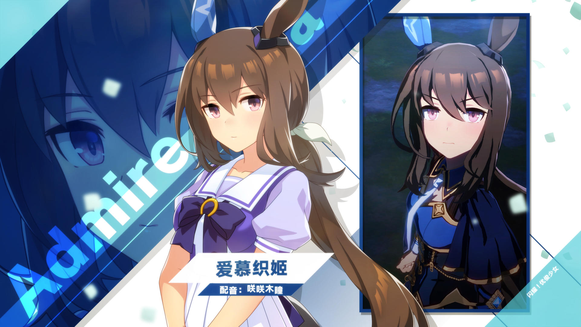 全国的新人训练员们,来认识一下那些在特雷森学园和我们一起实现梦想的学生吧! 仿佛笼罩着阴霾一般,不愿与他人深交的优俊少女“爱慕织姬”。性格阴郁而自律,身上透着一股让人放心不下的危险氛围。 配音:咲咲木瞳