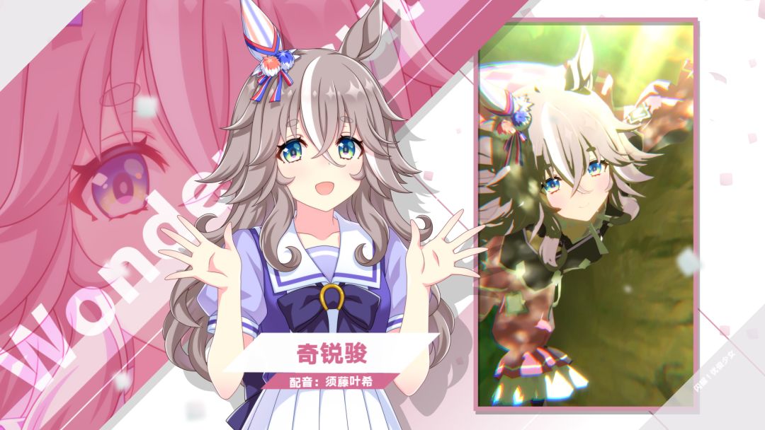 全国的新人训练员们,来认识一下那些在特雷森学园和我们一起实现梦想的学生吧! 性格温和、很会照顾人的优俊少女“奇锐骏”。但她也有着深藏不露的斗志,一旦临近比赛便会判若两人,严苛地将自己逼至极限。 配音:须藤叶希