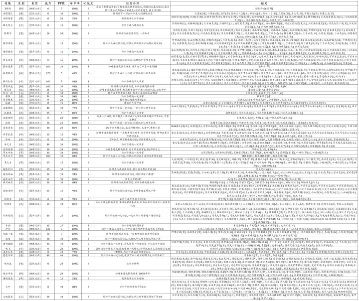楼主在这里为大家总结了所有技能的描述和可学习该技能的精灵(学习机方式除外),供大家参考使用~~~【 本贴将不断更新】 Tip:由于Tap图片上传限制,之前全部技能信息放在同一张图片过于模糊,现分放于不同图片中,每张图片至多包含50个技能信息~~~ ======官方群======官方1群:731845122官方2群:950937440(活跃)官方3群:8