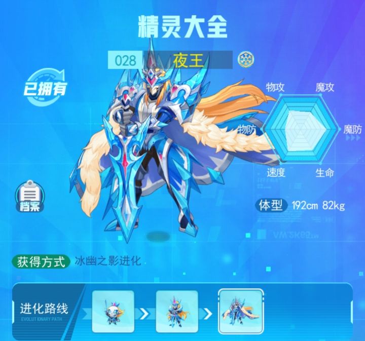 夜王(二代)精灵系别:冰系 获取地点:擂台积分 好友孵蛋优点:打击方面比较全面,血厚魔攻高,拥有强化的同时还能削减敌人魔防或者先手控制 缺点:速度比较当前热门法师而言,比较平庸,中规中矩的伤害和属性,太过于依赖强化,强化起来才能把输出最大化,魔防过低也是一个硬伤魔速强化流:魔攻255速度255性格:保守 胆小基因:清灵 罗根技能:热力火炮 空气切割 冰力聚集 破魔幽能/冰霜领