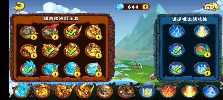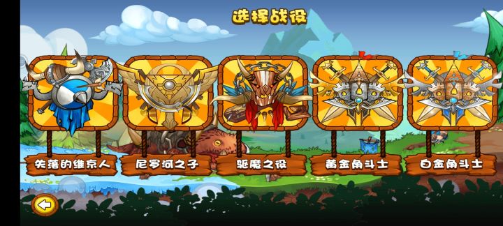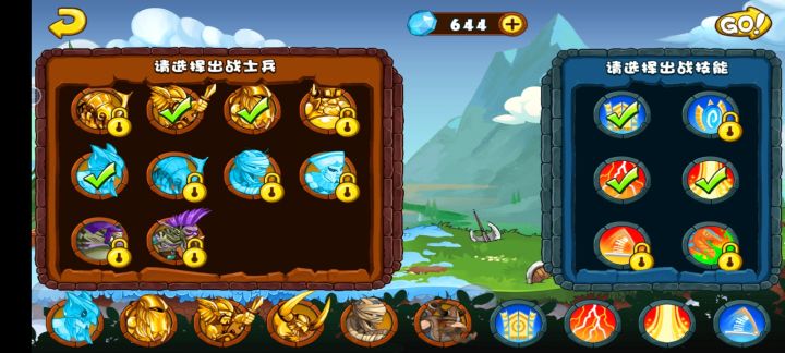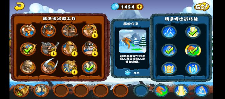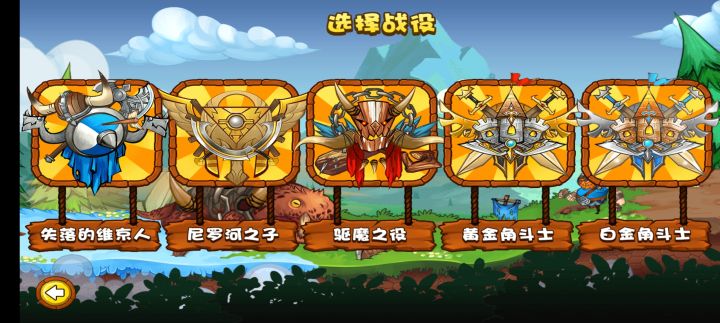 第一个档是用普通角斗士+黄金角斗士+雷神,大恶魔+普通祭司辅助打空。白金刺客在第四张解锁,作为强力输出,法术选择大电(清理远程和空中),弹簧用来分散敌人,门用来勾引。