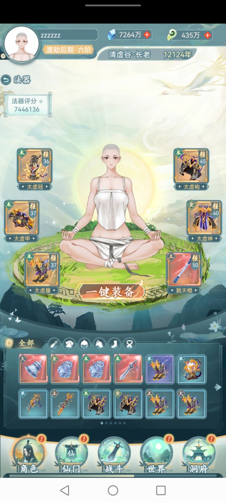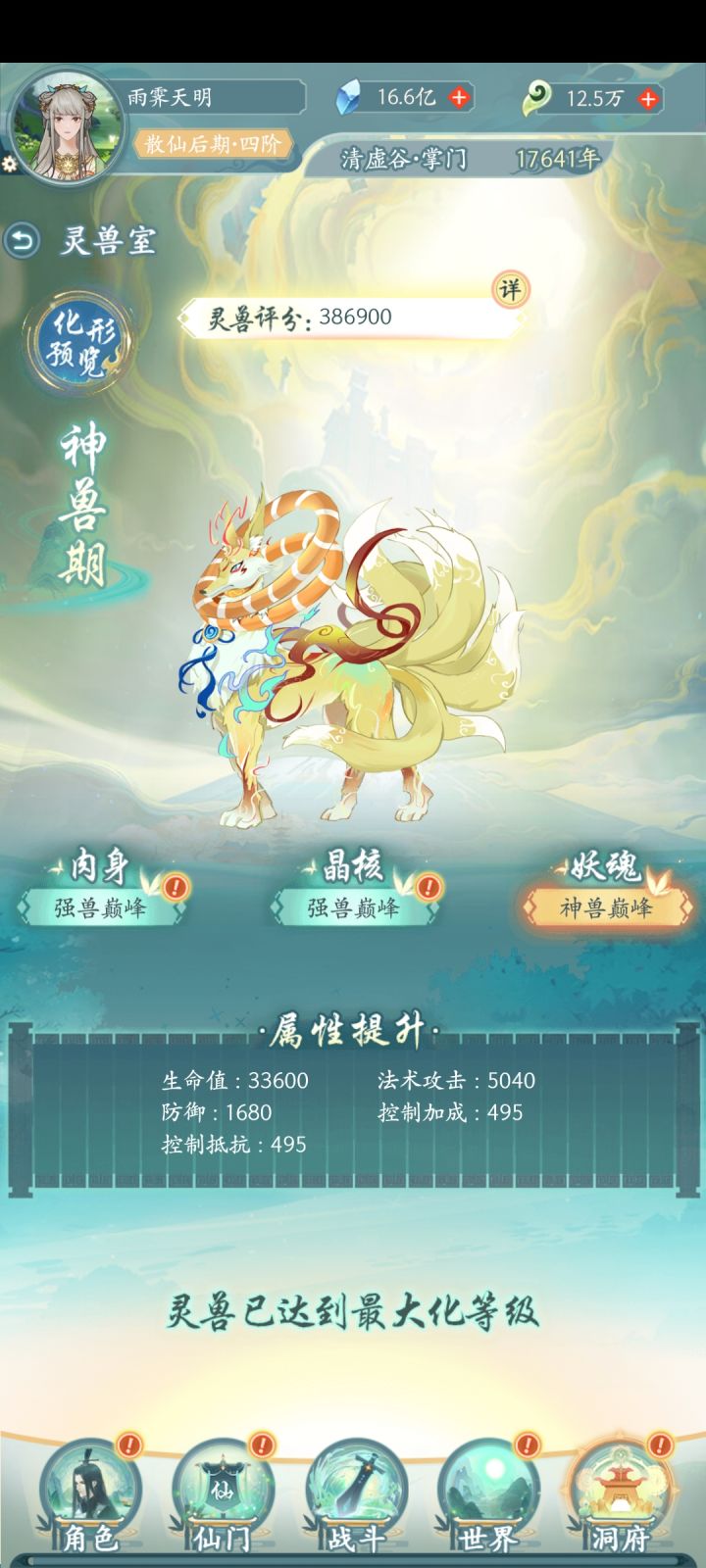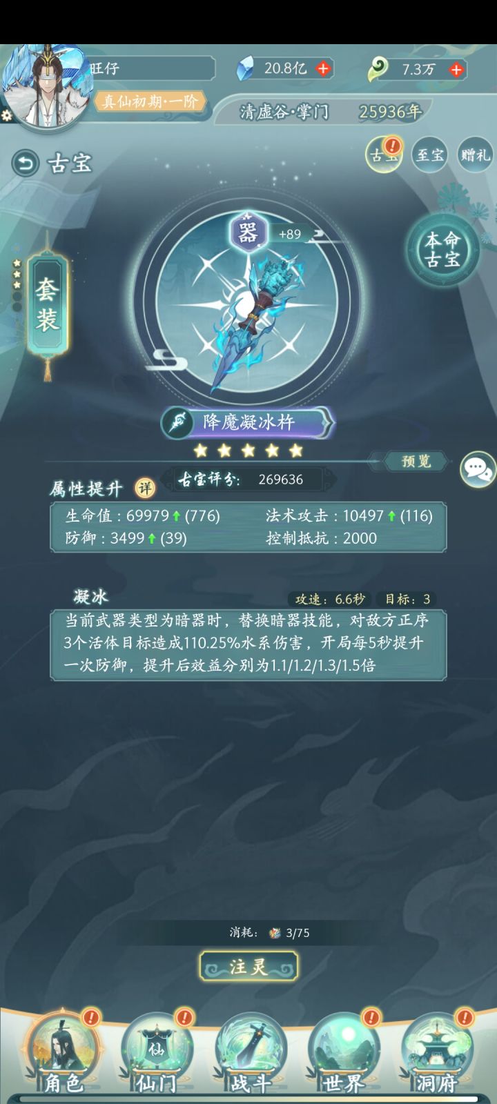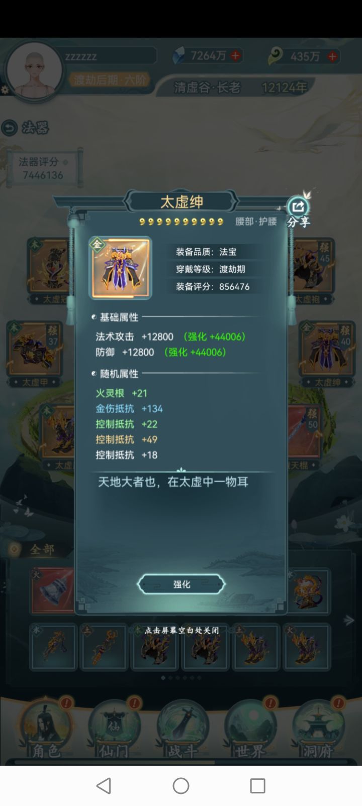 境界必须渡劫期,基础属性主要就靠法器,渡劫期法器基础属性非常高,所以没到渡劫期之前至宝尽量升级瓶子,多的拉壶,渡劫期之后至宝重置换遁空坠,多的拉盘子