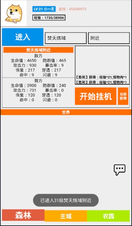 开发者的话游戏主要还是挂机,对游戏有什么建议直接加群找我 此外注意一下几点 1、第一次写游戏也有很多不足 2、游戏内可交易,也支持了离线挂机,经验可以用挂机获得的废料去副本磨经验。 3、有宠物但是是那种收益宠物具体看宠物图鉴 4、游戏没写什么攻略有问题世界消息或者问群友 5、游戏终究是游戏,没必要死磕,写个游戏也不容易后面会慢慢完善其他玩法