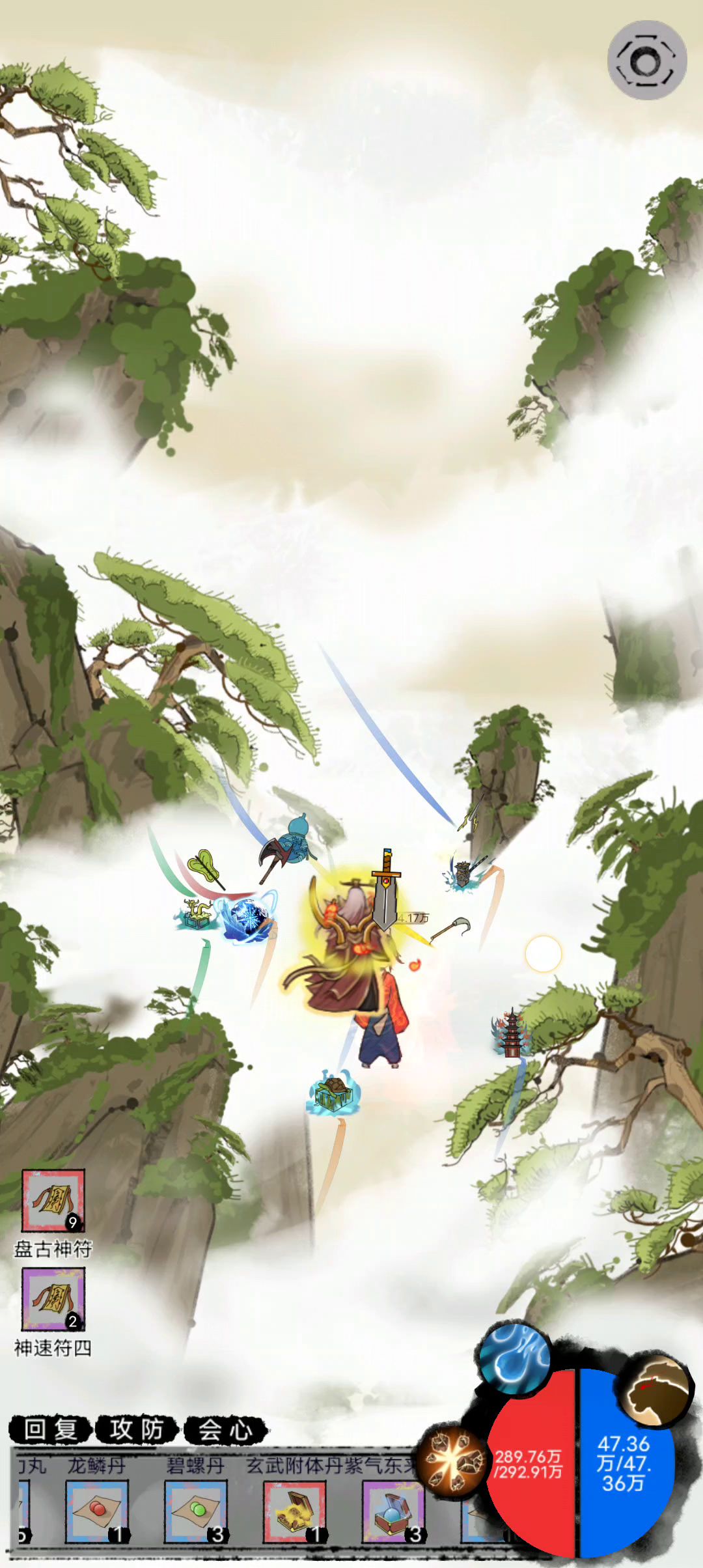 神速度(+攻击次数)配 金龙符(无敌五秒) 入魔 神拳 巨灵 百分百 恶贯满盈之类的 堆输出就行 符咒一点 无脑正面上 雷劫 虎力完全碾压,一路平推 背包都不用开,反正啥也不用。有空全部卖了换钱 唯一缺点在于容易老死,得后天天赋里搞点寿命天赋