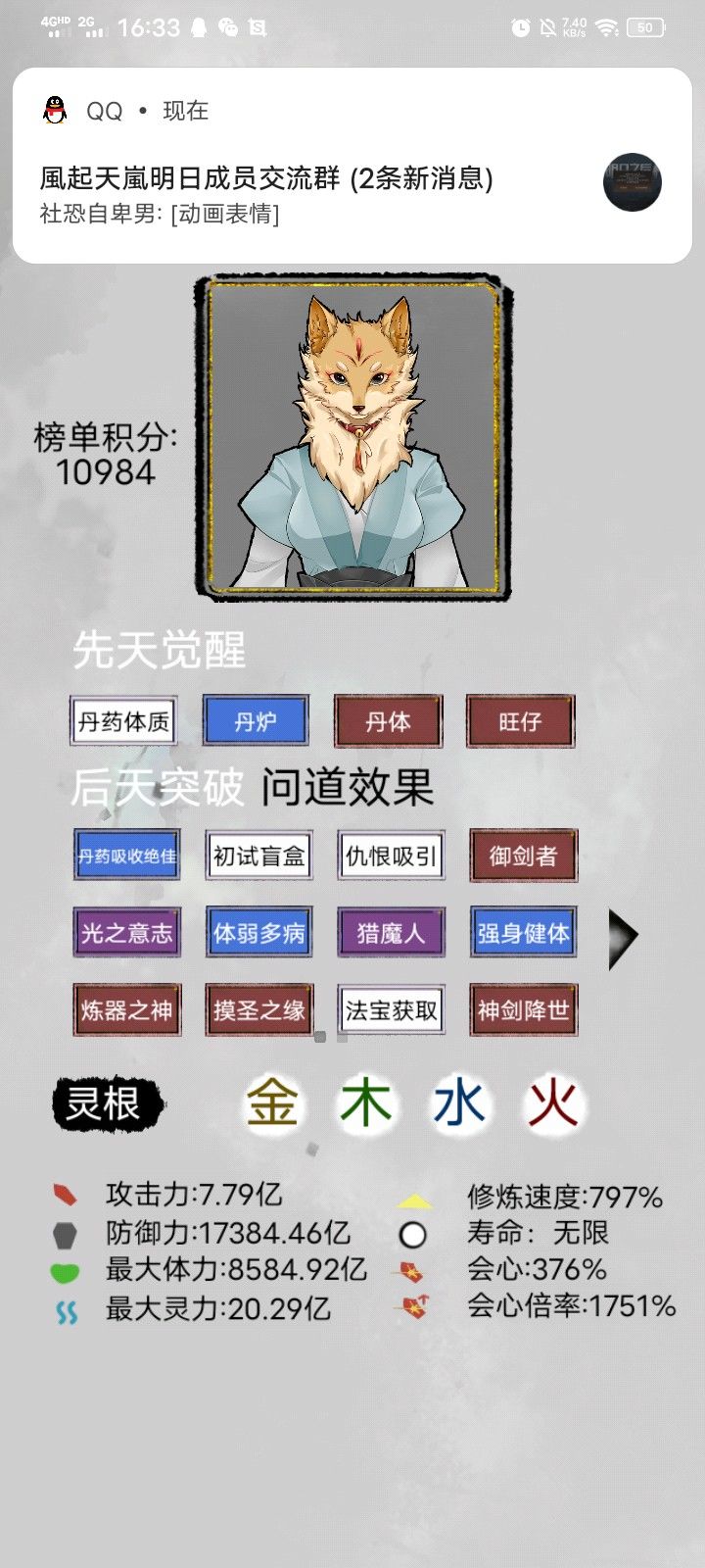 不死不灭基本上已经到了无限循环,恐怖的是看不到成长的尽头。大家鉴赏下!这个游戏随机性很强,目前这种数据,我觉得可遇不可求,真心不容易。如果新手对游戏有问题,留言必回。