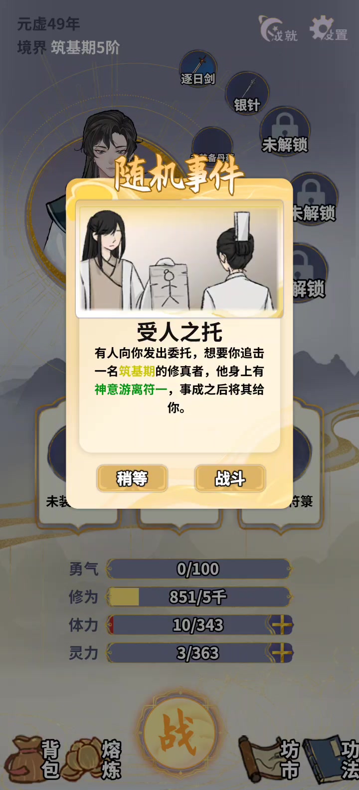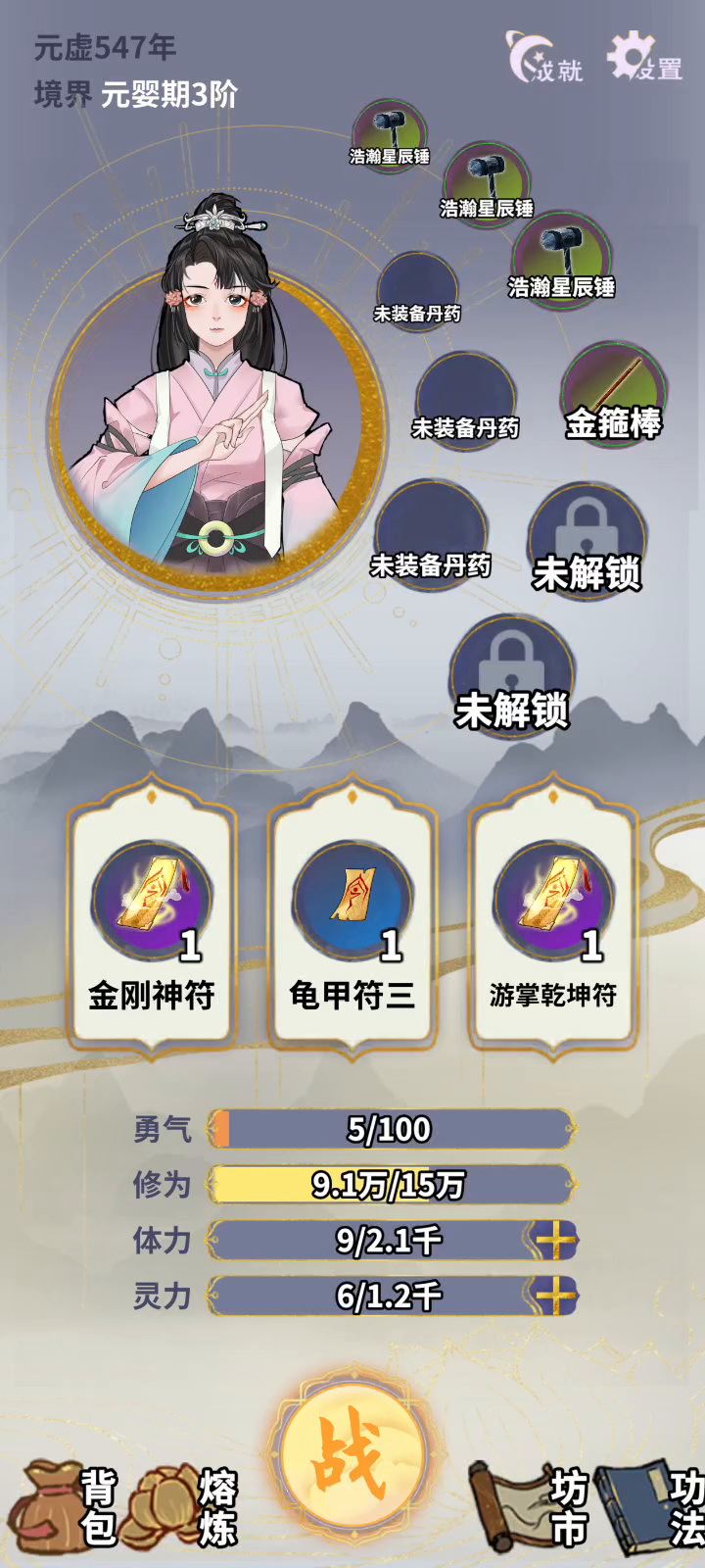 如视频呈现结果。个人建议战斗中出个逃跑按钮,丹药出个全部使用按钮
