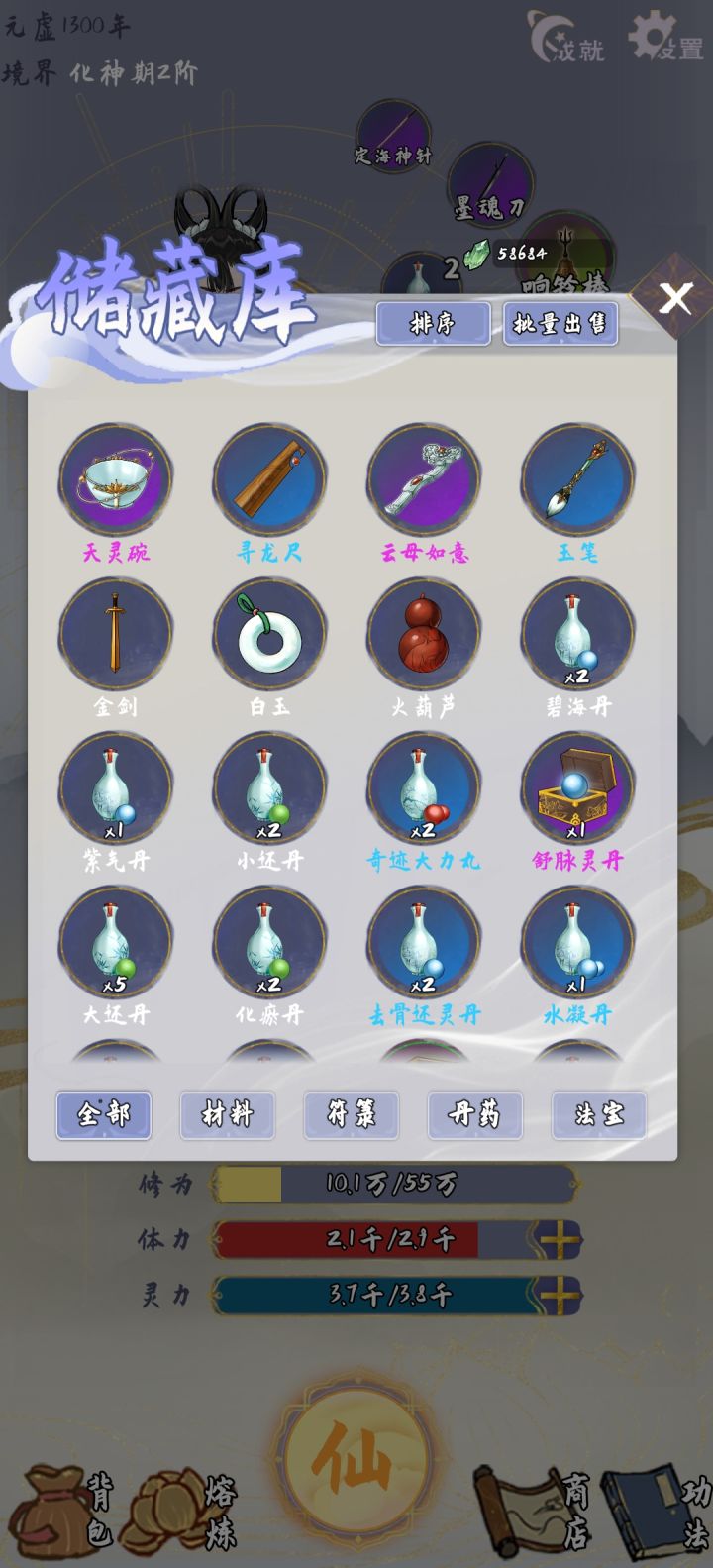 很多法宝等级标错了,比如标了仙品其实是凡品(去熔炼的时候就会错误),圣品红色名字的也变成了凡品。坊市不会随着大境界的提升自动刷新,要一直用灵石累积刷新。