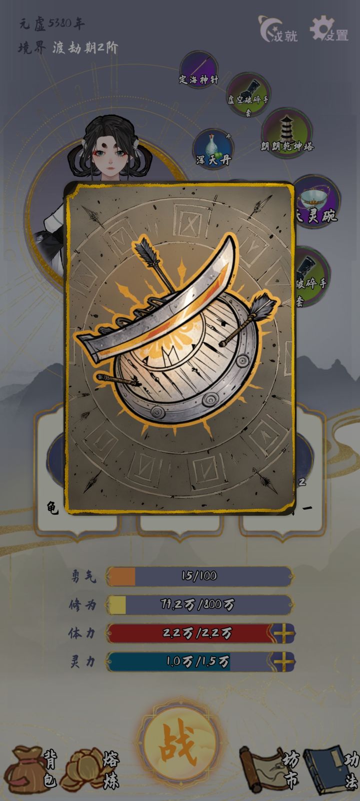 使用了重来一次丹之后界面即卡死,回到主界面选择继续传承。进来点击修炼依然卡死