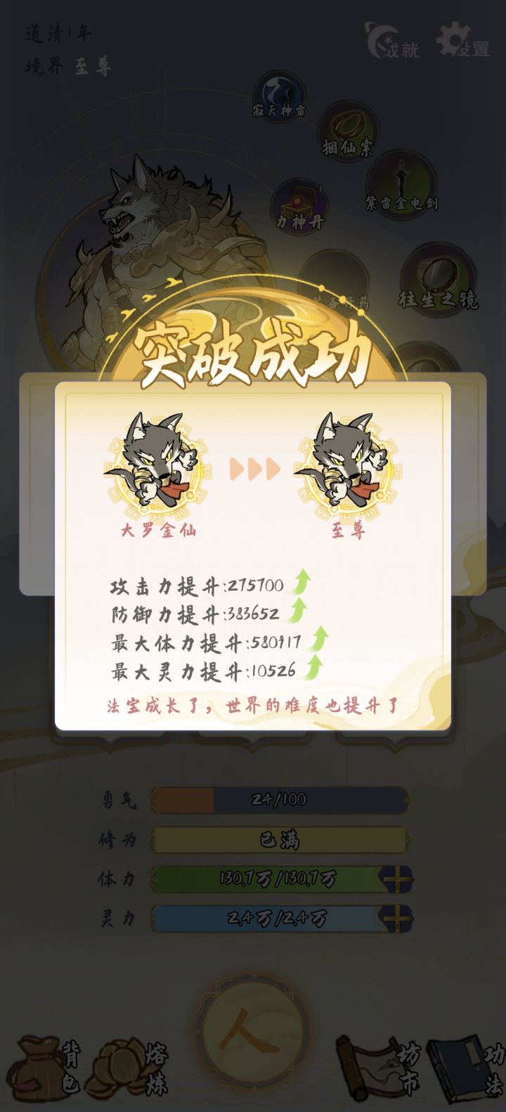开局可以选红色商人天赋(商店道具-50%)之后刷商店把所以东西都买了再卖出去除了用得到的还有加修炼速度的包祸体力之后东西都卖了符可以只保留金龙附体不要卖最后升至尊要用到准备多一点打不过妖怪也可以用还有功法三本木属性菩提之心紫色的升到满级每秒有百分之十五回血