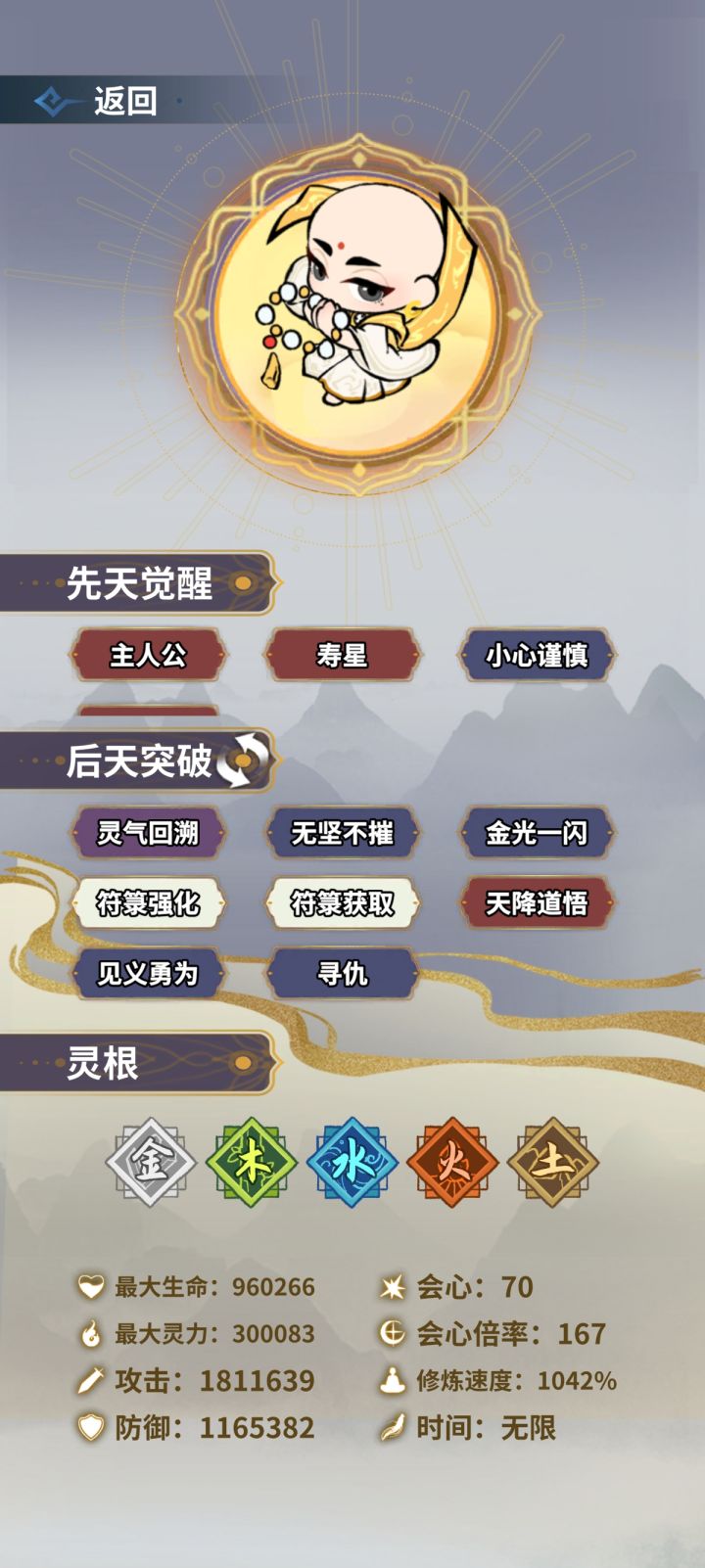 没有玩明白想找找思路的可以看这篇贴是萌新可以稳健上至尊的路径之一之一之一①开局。此时应该已经玩了一两局了,局内右上角点成就,需要完成坊市倒卖多少次,以及选天赋的时候达到刚出生就体力/攻击/防御初始+100%。这样才可以解锁刷钱天赋和加属性丹药。把不难达成的还有至少把加攻击的做掉,垃圾法宝和垃圾天赋的考虑别做,会影响掉落和刷新。本帖推荐三刷钱天赋开局,灵根尽量为三个或四个,若你已解锁寿命属性丹
