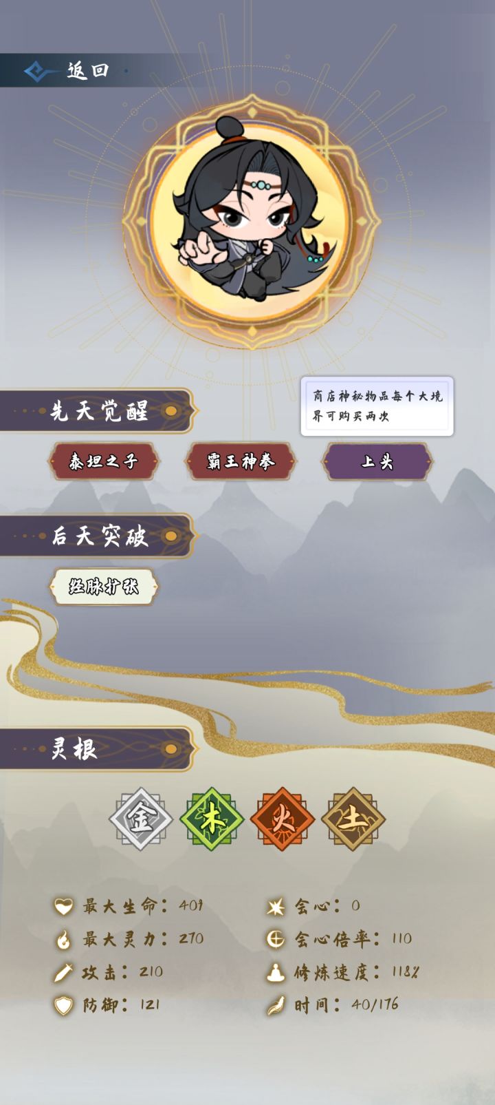 没有玩明白想找找思路的可以看这篇贴是萌新可以稳健上至尊的路径之一之一之一①开局。此时应该已经玩了一两局了,局内右上角点成就,需要完成坊市倒卖多少次,以及选天赋的时候达到刚出生就体力/攻击/防御初始+100%。这样才可以解锁刷钱天赋和加属性丹药。把不难达成的还有至少把加攻击的做掉,垃圾法宝和垃圾天赋的考虑别做,会影响掉落和刷新。本帖推荐三刷钱天赋开局,灵根尽量为三个或四个,若你已解锁寿命属性丹