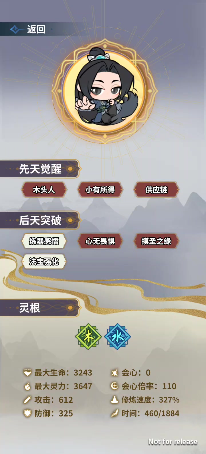 没有玩明白想找找思路的可以看这篇贴是萌新可以稳健上至尊的路径之一之一之一①开局。此时应该已经玩了一两局了,局内右上角点成就,需要完成坊市倒卖多少次,以及选天赋的时候达到刚出生就体力/攻击/防御初始+100%。这样才可以解锁刷钱天赋和加属性丹药。把不难达成的还有至少把加攻击的做掉,垃圾法宝和垃圾天赋的考虑别做,会影响掉落和刷新。本帖推荐三刷钱天赋开局,灵根尽量为三个或四个,若你已解锁寿命属性丹
