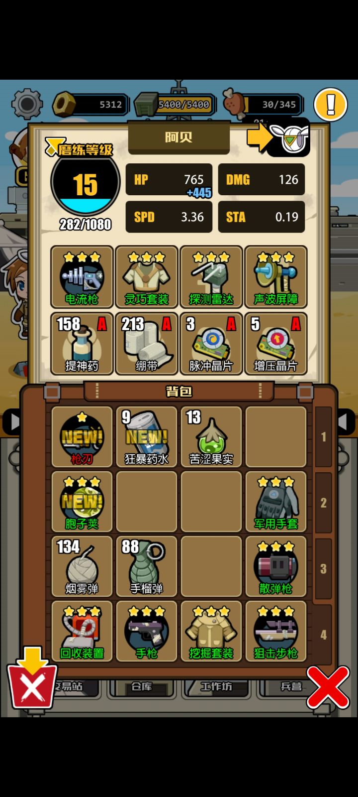 做一个简单攻略吧。前期我看好多人都在问。挖土摸残骸烟雾弹,没啥好说的。材料合成按图一颜色放就有对应零件,按三代一对子炸弹顺子放会提高获得的零件和资源获取。自己走出营地按蓝色感叹号可以自己看合成表。为啥不打架因为托节奏。想要新卡打兵营模拟战。金卡打副本一层。一定要去看看大型遗迹的组合方式,我现在50级加十几熟练才看到,感觉亏了一个亿。套装首选隐匿套装,一般装备首选望远镜探测雷达。如果烟雾弹有十几个,可以考虑自动旅行。