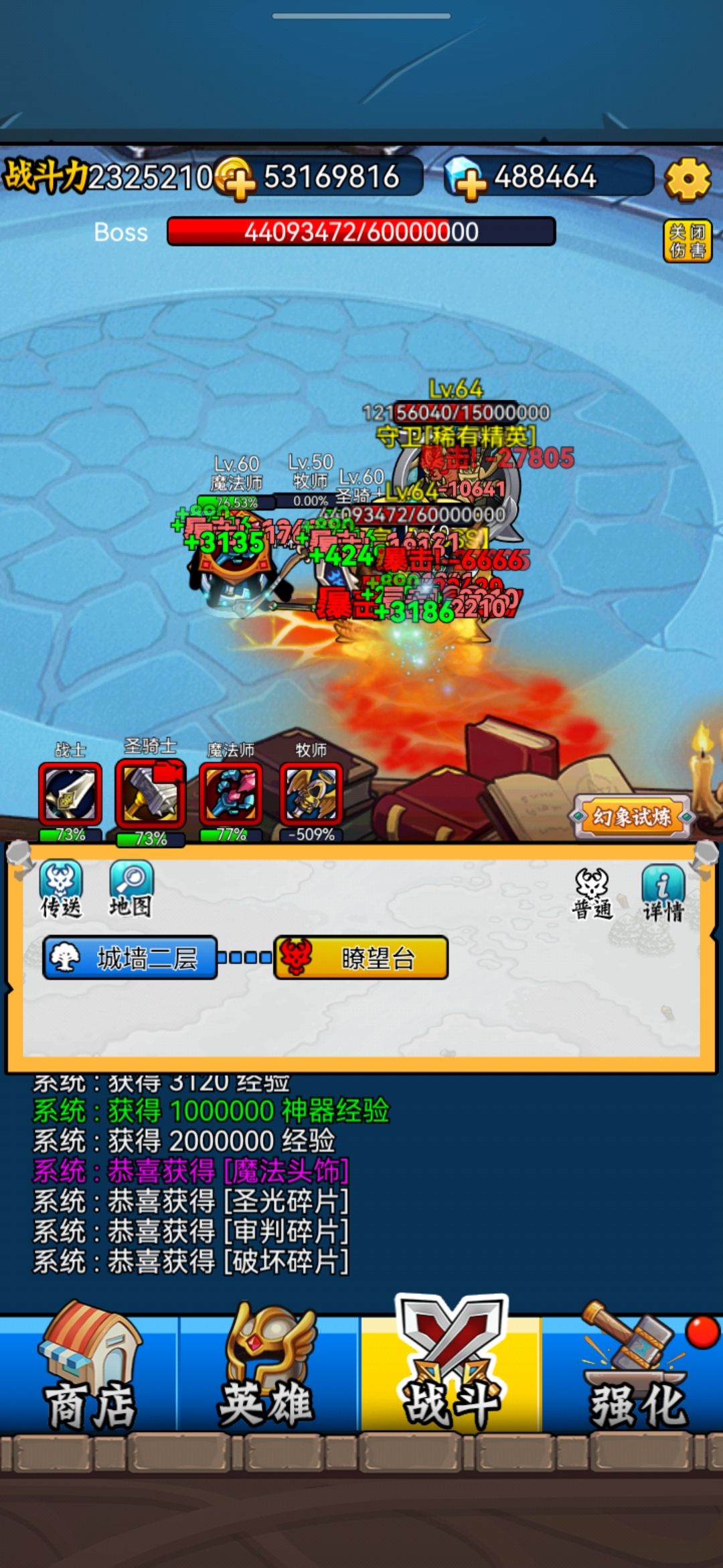 让大家少走弯路。。。 第一,前看广告领8小时经验和钻石有助于你的快速升级 第二,装备洗词条:命中,暴击,极速优先,其他的都是虚的 第三,到了50级之后的输出牧师,即使各个属性不如法师,输出也是牧师高,所以神器牧师建议激活暗影,法师激活冰(冰法师有个震开小兵技能,极速拉满减小兵伤害有奇效) 第亖,选神器建议输出战士,奶骑,冰法,暗牧师(战力高于BOSS打不过很正常,有的时候你等级到了自然就打得过),