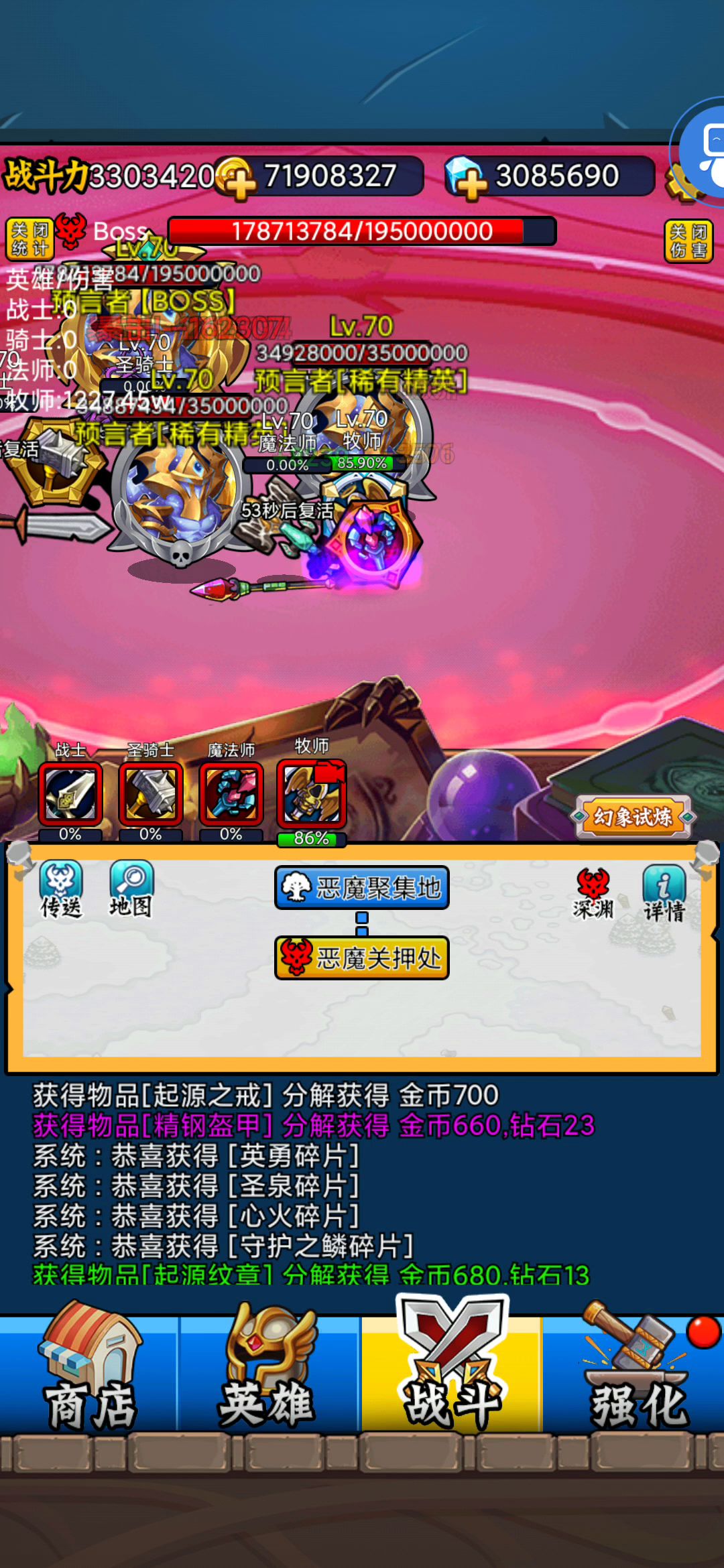 想要英雄装避开不了打深渊问题,什么时候可以打,只是取决于什么时候你能被boss撞一下不死,站位分开站,聚集的话boss斩击太痛,前期不建议尝试,最后170boss用暗牧捆住可能会有奇效!!