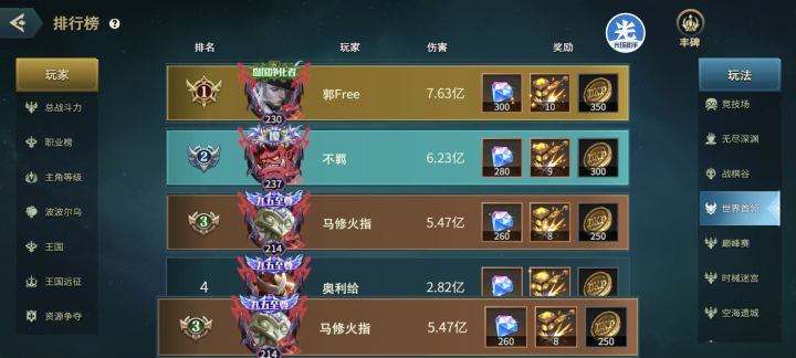 作为本游戏玩家(中低氪级平民玩家)的硬通货币,其价值完全等同于充值。本文将从钻石获取的方式,到使用性价比方面跟大家进行细节阐述。钻石获得方式很多,氪金和非氪金玩家差距并不会太大,只要你有足够耐性,持之以恒,甚至可以在数月之后反超,熬走一批又一批的氪金玩家。以下为每日钻石获得途径(皆以第一名为标)博弈深渊800无尽深渊600首领奖励350拍卖均比3000国王活动均比1500通行证约500勇者试炼均1