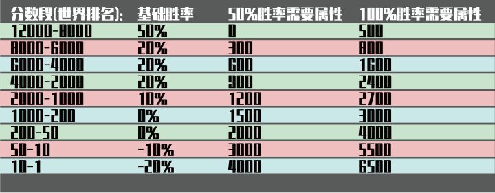 《电竞之路》排名与对应属性、数据对照表