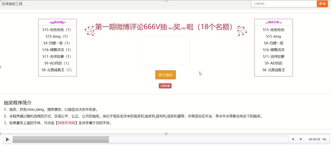 下面由奔奔来公布第一期微博评论666V中奖名单:关于抽奖的整个过程 奔奔也是全程录屏了的喔,感兴趣的大大 可以看一看最后附上参与本次活动全部名单: