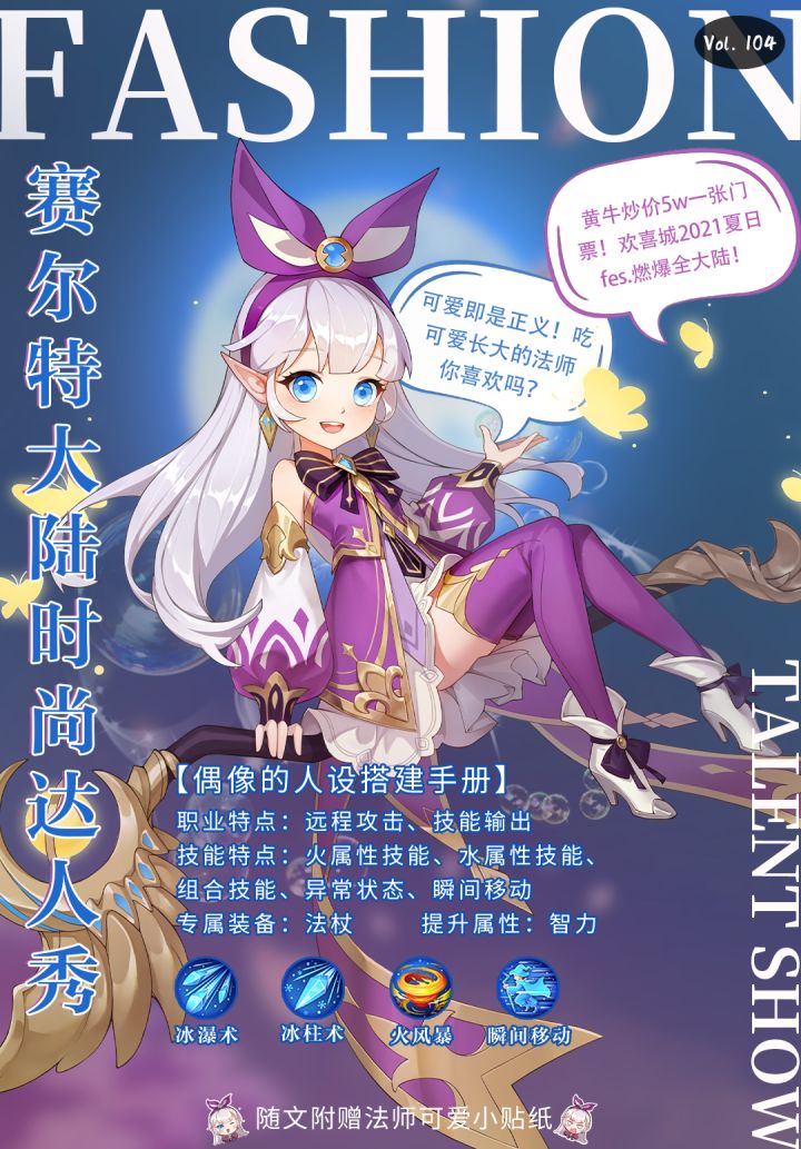 ● 嘿!新的《赛尔特大陆时尚达人秀》杂志如约而至!● “星河”特产,依旧是不知道从哪里掉落下来的“记忆瞬间”哦~● 这次介绍的是,赛尔特大陆人气偶像群体,法师!● 据说她们可是出生在可爱国、可爱省、可爱市、可爱镇、可爱乡......● 嘛!总之就是吃可爱长大的!!● 所以这期杂志这么可爱,还是5块钱!初心者大大,不来一份吗~~======一只勇者咕咕鸡。>>>捕食展开,目前已捕食: