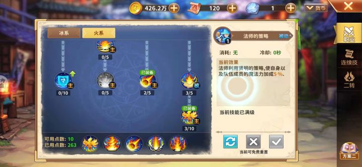 ● 推荐一下法师的技能加点:1,法师前期需要冰火双修,主火火风暴加狂暴火精灵加上冰的冰柱术和冻结术,这样伤害可以最大化,还有一个技能格子带上魔人附体或者瞬间移动可以保命(4英雄推荐带瞬间移动可以穿墙)技能可以连接着放,连续技看哪个伤害高带哪个,我个人认为法师嘛,就是靠技能打伤害的。● 这样前期不管打什么伤害都很高,有俩个群体俩个单体。2,中期(55~80级吧)还是冰火双修,主火● 55级