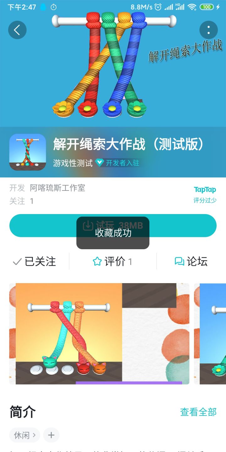 解开绳索大作战第二个关注在此发了一个帖子留下来证明截图