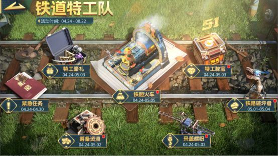劳动节即将到来,这是属于全体劳动者的节日,劳动是一切幸福的源泉。节日期间,我们为各位准备了新的活动——铁道特工队,活动奖励丰富,今天就由小艾为大家带来活动的详细介绍!活动开启时间:4月28日-5月5日本次活动共分为七大主题,话不多说,接下来就让小艾给大家一一介绍吧!Part 1铁胆火车1.装扮等级: a.活动期间,可提交【螺丝】获得积分,提升装扮等级2.等级奖励: a.装扮等级每提升
