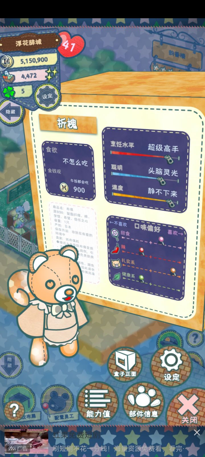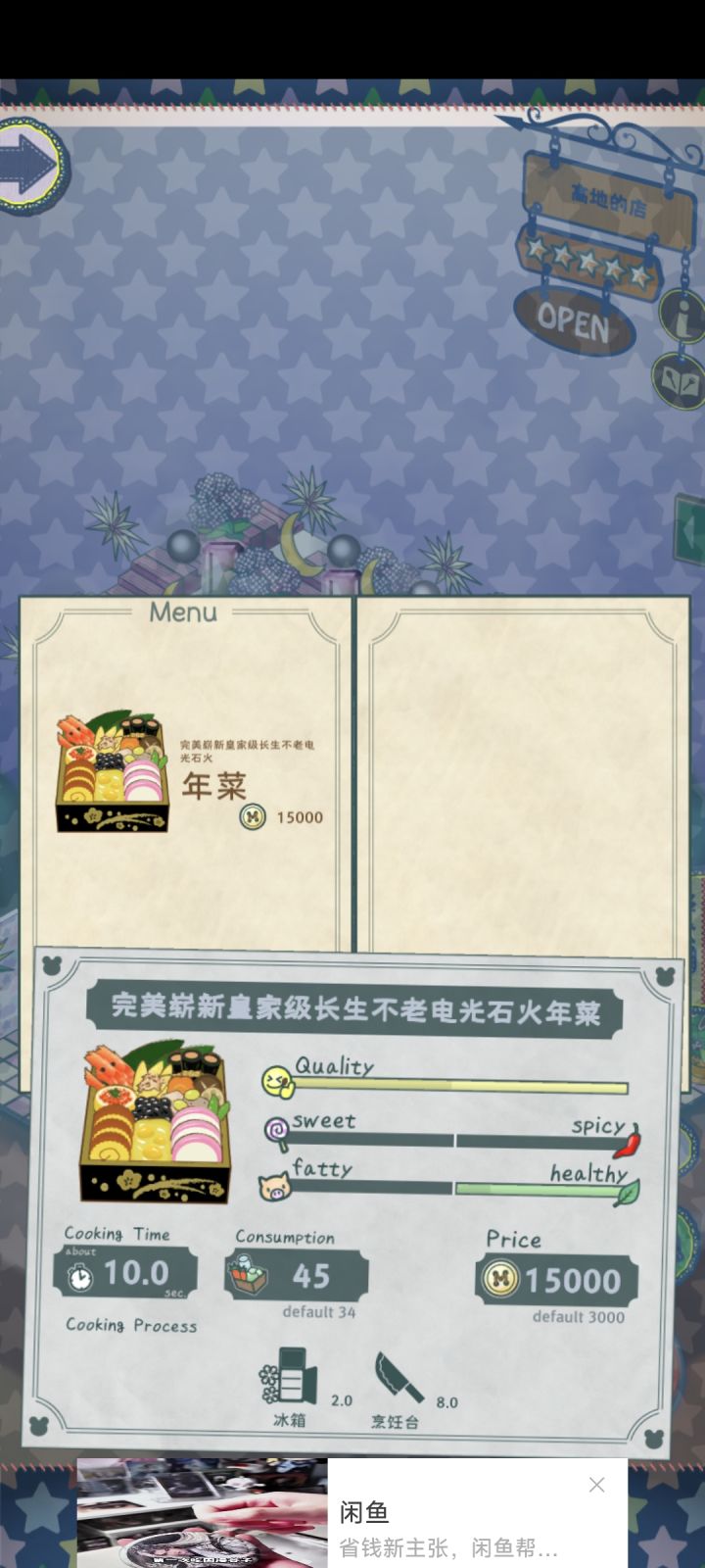 有大佬知道吗?第一图的宝石是怎么得到的,去看别人的店都有不同的宝石,但是都无法用四叶草复刻。第二图的装修,就是地板上的草地为什么可以这么不规则想放哪里就放哪里呢?这个是地板的不是只能平铺出去吗?但是它摆放的位置是一小块一小块的,还超出了地板?第三图的年菜一万五,还只要十分钟,销售额一个小时一百多万,应该用什么属性的布偶去开发年菜的菜单?开发的时候要注意消除什么板块呢?