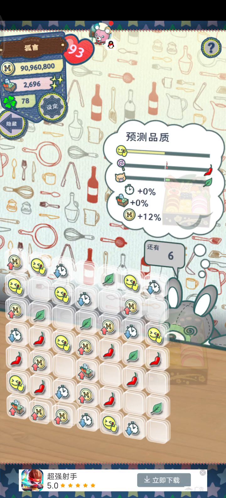 一步到179真的爽歪歪! 下午刷了好几次都不太好, 终于 在晚上想着再刷几遍试试吧 嘿嘿 几遍下来似乎还不错 然后... 然后 就成功了!! 真的刷这玩意于我而言真的太难了 之前一直一直刷都很难出200➕的 好像就一个也是年菜最终9201 都是100多,可太难了 这玩意吧,我发现消金币最好的结果是由其他步骤触发的,这样比直接消、连消三个加成得多 还有就是如果刷了很多次还是不满意干脆别刷了,换个时间再刷,效果好像还不错。