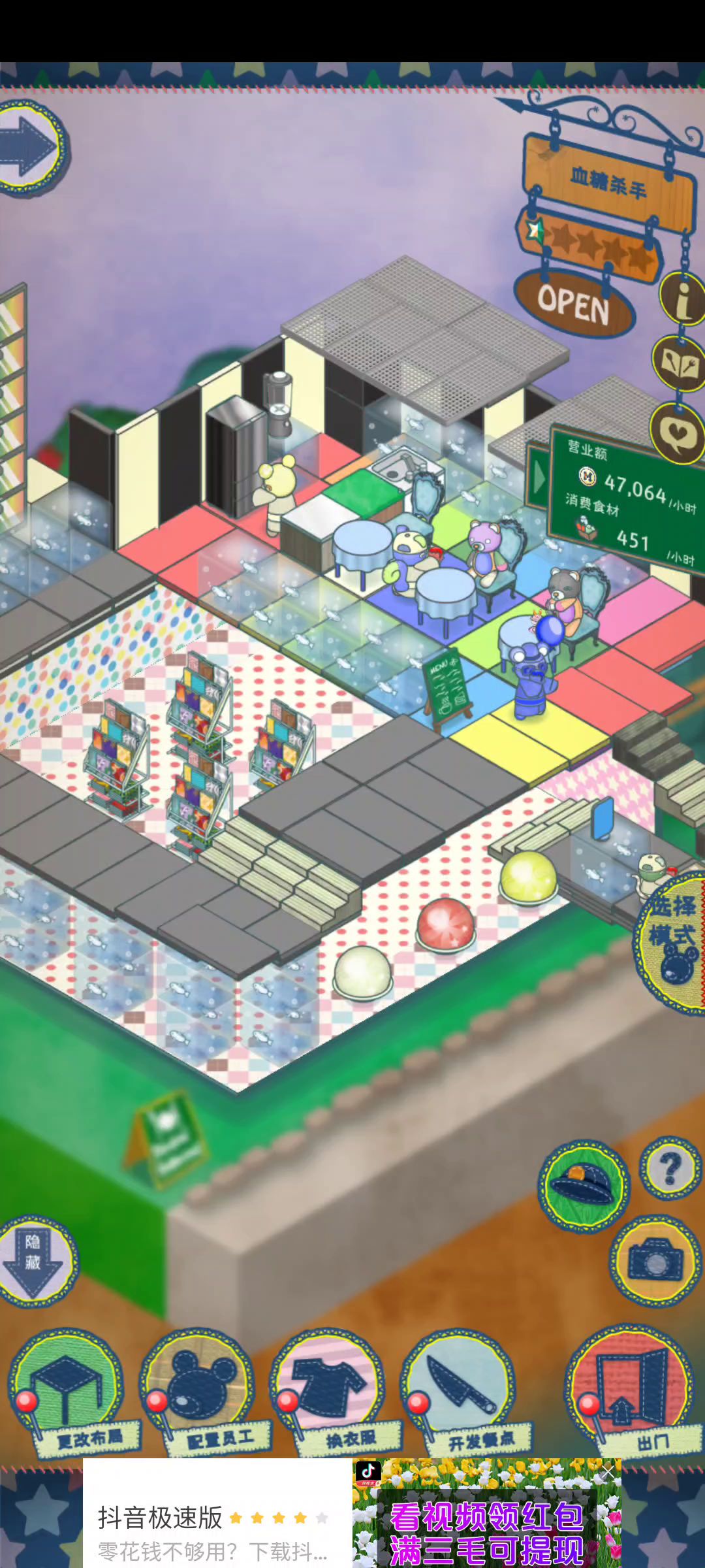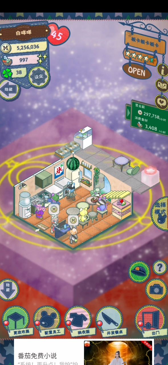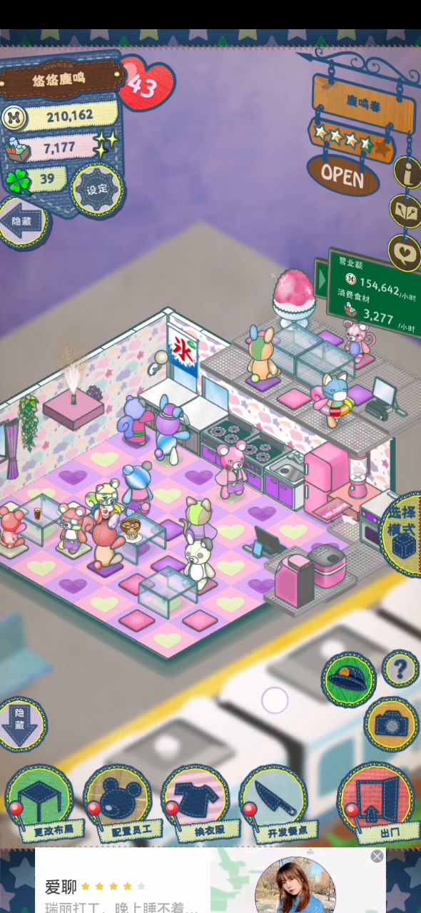 今天刚下游戏,肝了一天 从三星开始获得⭐️的速度变慢了好多,特别是评价里面提示上菜速度慢 后来做了这样的调整: 1.菜单只放了销量和评价最高的一样菜 2.现在潮流是海滨、祭典、夏季、辣食、冷食 正好买了水地板(海滨属性)、刨冰装饰(祭典属性)、电风扇(夏季属性) 3.我还放了三套厨具 不知道起决定作用的是哪项,但星星⭐️比例提高了很多,像视频里面这样十连星星⭐️的不少