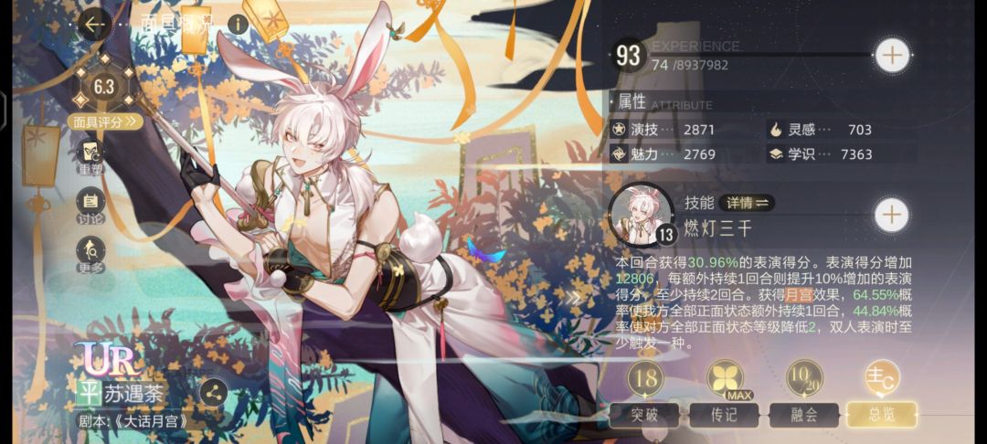 ⭕莉特的技能效果是立即触发三次【命运之刻】效果,每一次都会在提升学识和演技两种属性效果随机,且重复触发有额外的属性加成。在目前这个学识