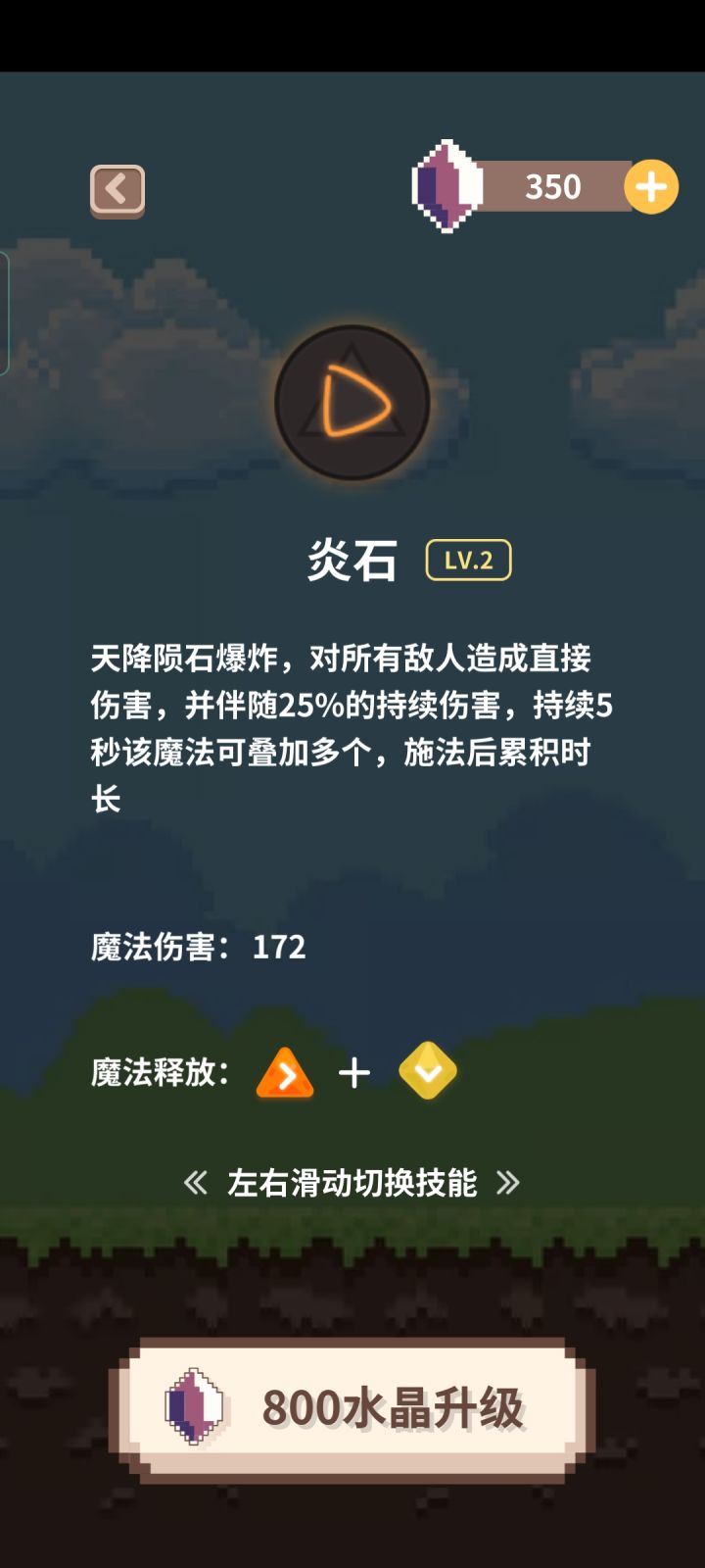 玩了一段时间 找到了一个快速合出想要技能的方法!首先先去技能里查看技能是用哪些基本技能触发的,比如炎石(目前我认为最有用的技能),他的触发是>和v,那就无脑划-和|(也就是不需要的技能),直到没有-和|,这个时候画一下>就可以得到炎石了!