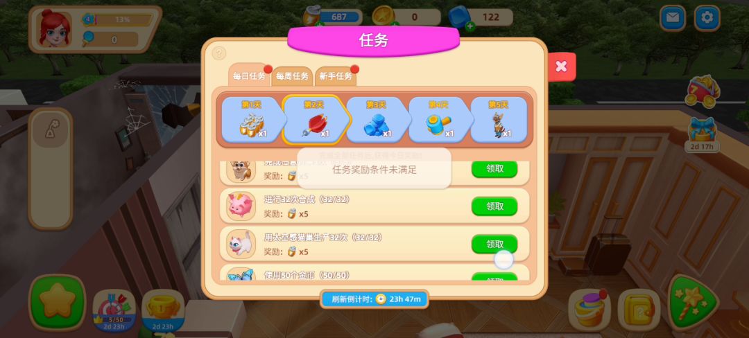为什么每日任务奖励没法领? 后面几个能领,前面这几个领不了,我明明完成了呀