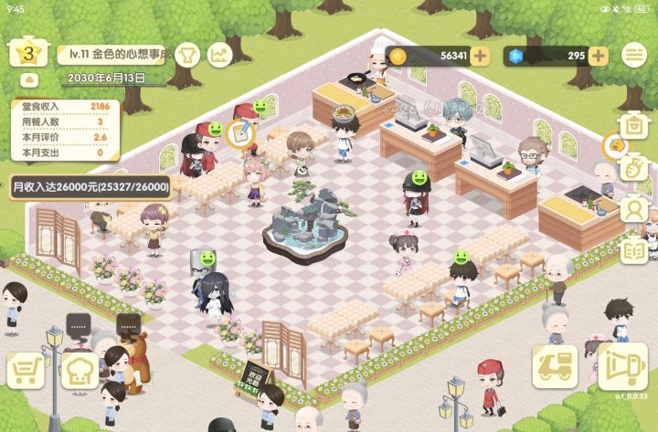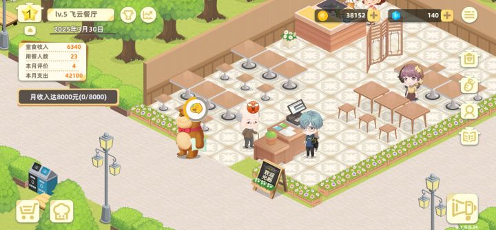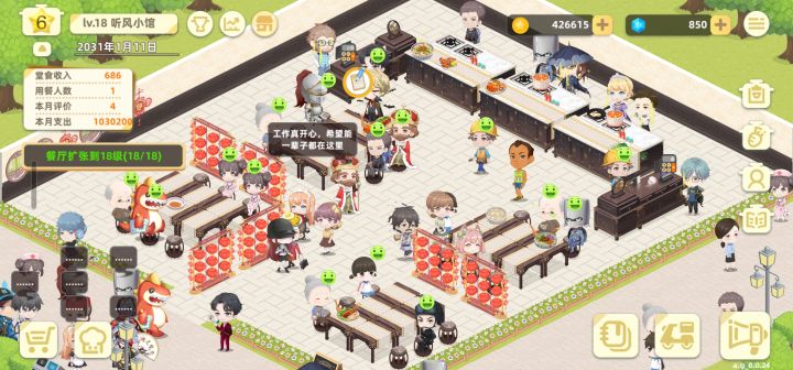 画风挺可爱的,不想玩了就下机可以存档。餐桌类型有点单一,可以搞点双人桌四人桌啥的,我还想整个包厢呢😁