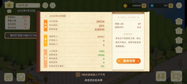 我是被听荺骗来写攻略的凉面🤔🤔🤔第一次写攻略,真的很菜望谅解!衫仁镇楼包含:介绍界面,菜谱,人物,外卖等内容开局:首先有厨师,服务员,收银员和门童四个职位!开局会送你前三个职业的员工。刚开始你遇到有客人在门外停了一会走了,为什么不进店吃饭?!你需要门童拉客~门童需要你在开始时留心地点开招聘栏去招聘(因为技能是拉客,比较牛逼)。首先可以看到这个叫衫仁的NPC(和他对话,你说想删游了他会骗你