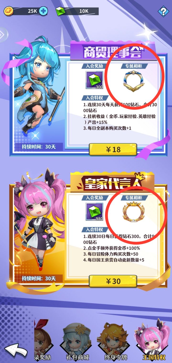 白嫖的不用看了一个多月前入坑 感觉游戏还行就充了点钱 后面发现充值亏了…写给小白 别和我一样被坑了…充值的话只充值 限时活动 限时礼包里面68元返礼金卷的 充68返利136,再用返的劵买你想要的其它的比如双月卡 永久卡啥的…你说买永久卡不够?那就等一个星期 这活动每个星期三10点刷新 再充一个就够了 氪佬的话随便充 当我没说(不过直充真的不划算)如图 中间的 我已经买了 所以没显示价格对