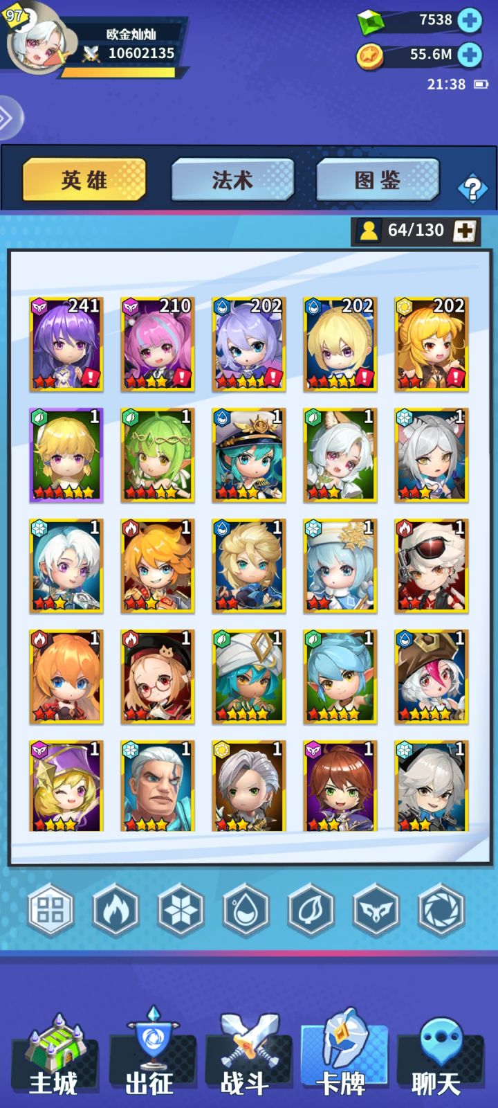 玩了也差不多1个半月了,图片2张一组展示了4个区的号和进度,各种阵容都有尝试,核心尤利娅零八露西3个,真要多说。新出的水刺勉强算一个。最早老区伍池号,哪个区记不住了,核心木法露西,吃着过年福利但新手过河断断续续一直摸鱼到39章,期间更新过22天30章的进度,现在各种排行在8名左右。中期号R29欧金灿灿因为会玩一些了,开区进度猛,但之后玩的比较松懈,核心暗法尤利娅+光法伊利亚,也是21天30章进