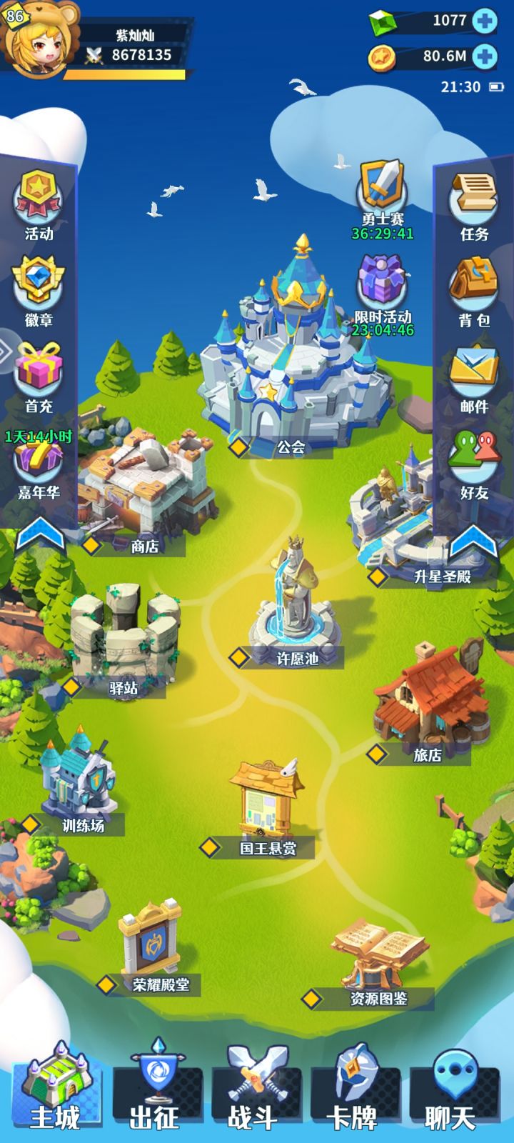 二、日常正常来说,刷完初始就该推图了,但是我想先把日常放在前面,因为这才是玩家平时做的最多的内容(因为后面卡图卡到无聊),也是为了让新玩家对游戏有个整体了解。1.活动和限时活动里面“红点”点了,签到之类,白嫖资源没啥可说;2.右上角“点金手”,领取免费档就可以了,这里注意一下,下午5点会刷新,可以再领一次;3.任务先不点,最后再点;4.邮件领完,一般是每日福利20召唤石,公会结算等等;5