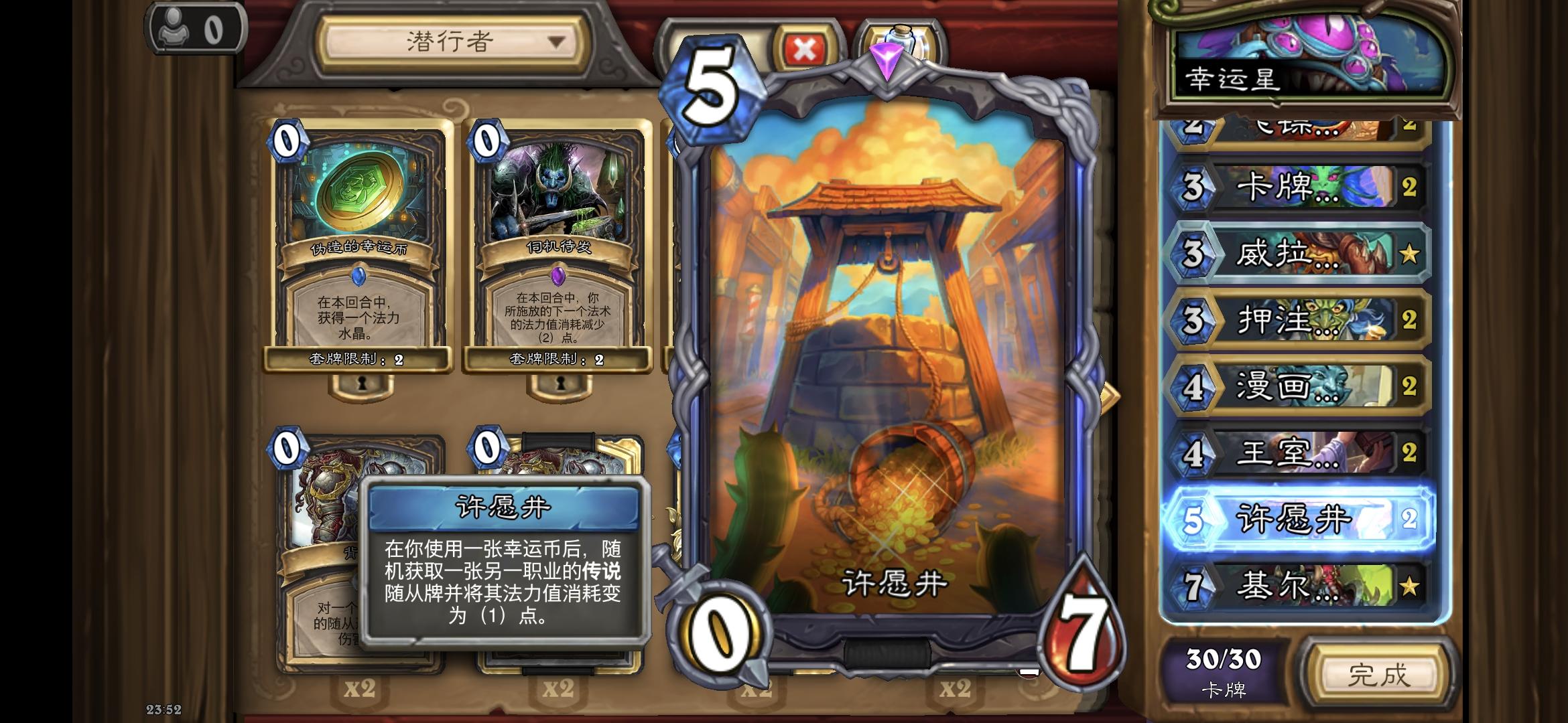 ### 幸运星 # 职业:潜行者 # 模式:狂野模式 # # 2x (0) 伪造的幸运币 # 2x (0) 伺机待发 # 2x (0) 暗影步 # 1x (1) 垂钓时光 # 1x (1) 海中向导芬利爵士 # 2x (1) 致聋术 # 2x (2) 把经理叫来! # 2x (2) 贪婪的伴侣 # 2x (2) 邮箱舞者 # 2x (2) 飞镖投掷 # 2x (3) 卡牌评级师 # 1x (3)