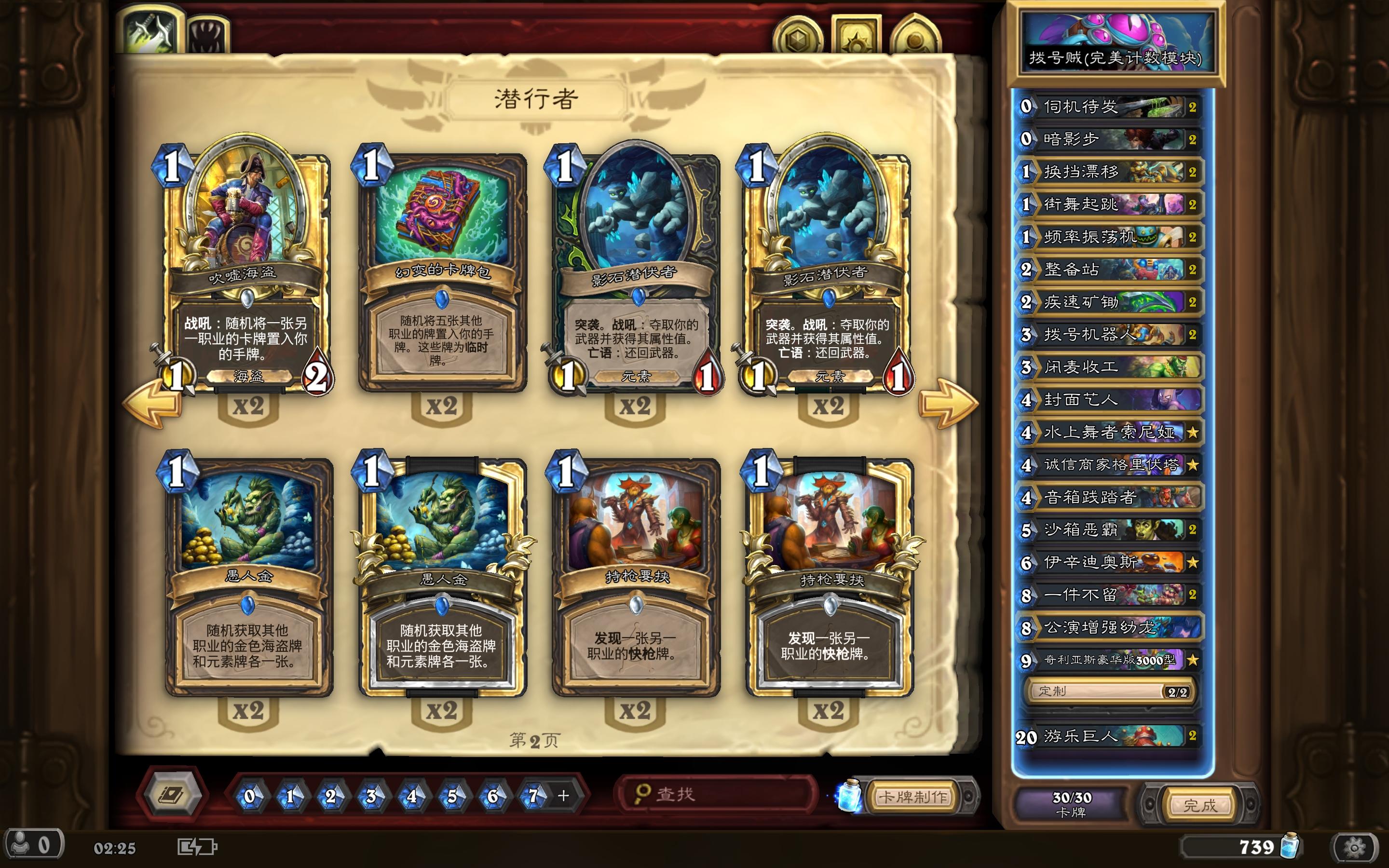 主流拨号贼改良了一下,去掉了焦油和可疑交易加入了游乐巨人解决了拨号贼铺完一波疲软的问题,更加好打法师了,优化了手速不够刷不完礼物的问题去掉了礼物加入了闭麦收工 ### 拨号贼(完美计数模块) # 职业:潜行者 # 模式:标准模式 # 天马年 # # 2x (0) 伺机待发 # 2x (0) 暗影步 # 2x (1) 换挡漂移 # 2x (1) 街舞起跳 # 2x (1) 频率振荡机 # 2x (2