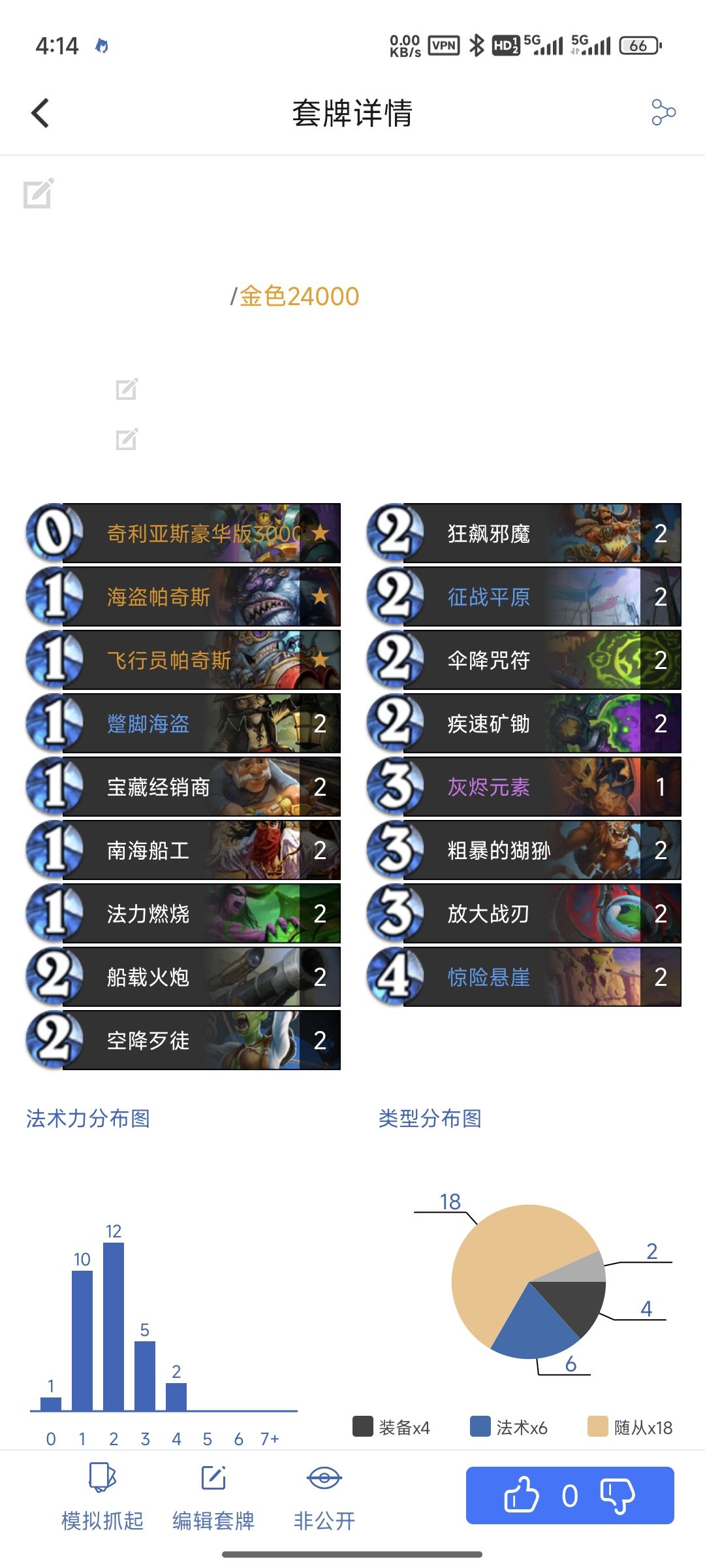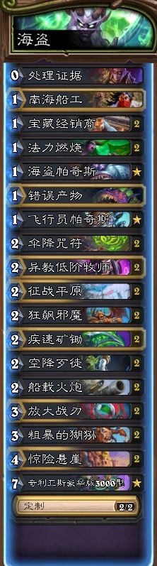这个月用狂野海盗瞎轻松上传说,在现在的狂野赛马环境下胜率还算可以的。 这套卡快攻内战前期注意解场,一费找飞行员帕奇斯和空降歹徒站场,我只有在那种天胡暗影牧快攻翻过车。 打慢速控制卡组前几费能打多少血算多少,这个卡组爆发不低的,目前环境很少有人带吃刀,可以把刀挂身上配合地标卡、伞降、狂飙邪魔、猢狲、征战平原一波打高爆发,中后期感觉对面组件差不多了就用法力燃烧卡对面,除了自己天湖不想给对面解场的情况下