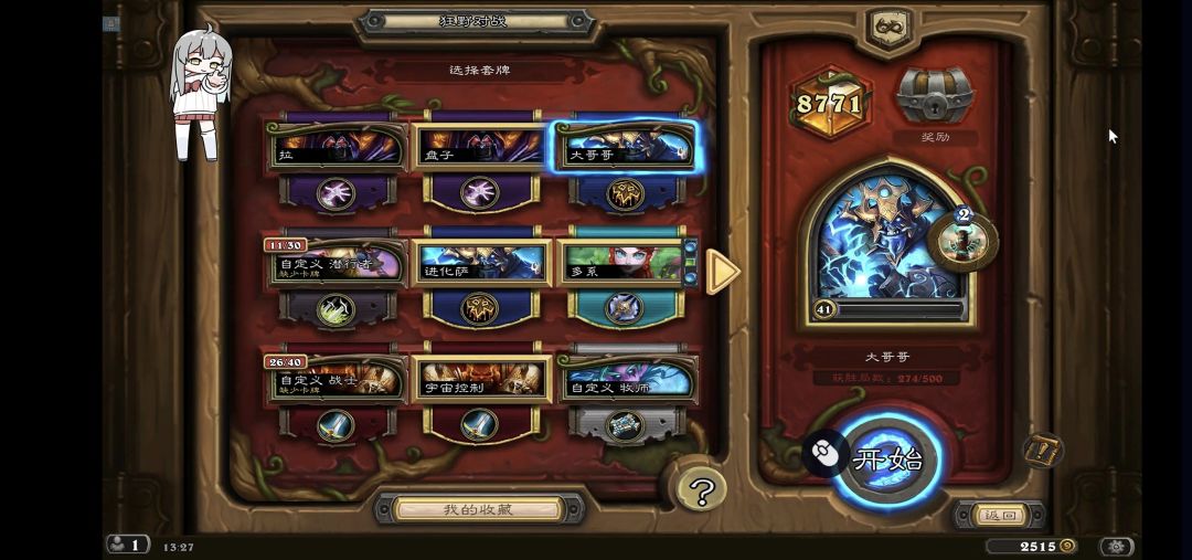 前言: 大家众所期待的火鸡年并没有给我们带来比较完美的游戏体验,反而还让新职业dh一家独大,虽然刚刚实装了dh的削弱补丁,dh在狂野减少了一些,可在标准还是肆意妄为的情况,面对dh标准妄为,我决定遁入狂野继续挨打。 ———————————————————————— 近期我一直泡在狗贼的直播间学习技术(指挨打),可惜狗贼嘘嘘一直在打标准,时不时还下棋,就是不打狂野。 不过,不负有心人,当我快放弃准备