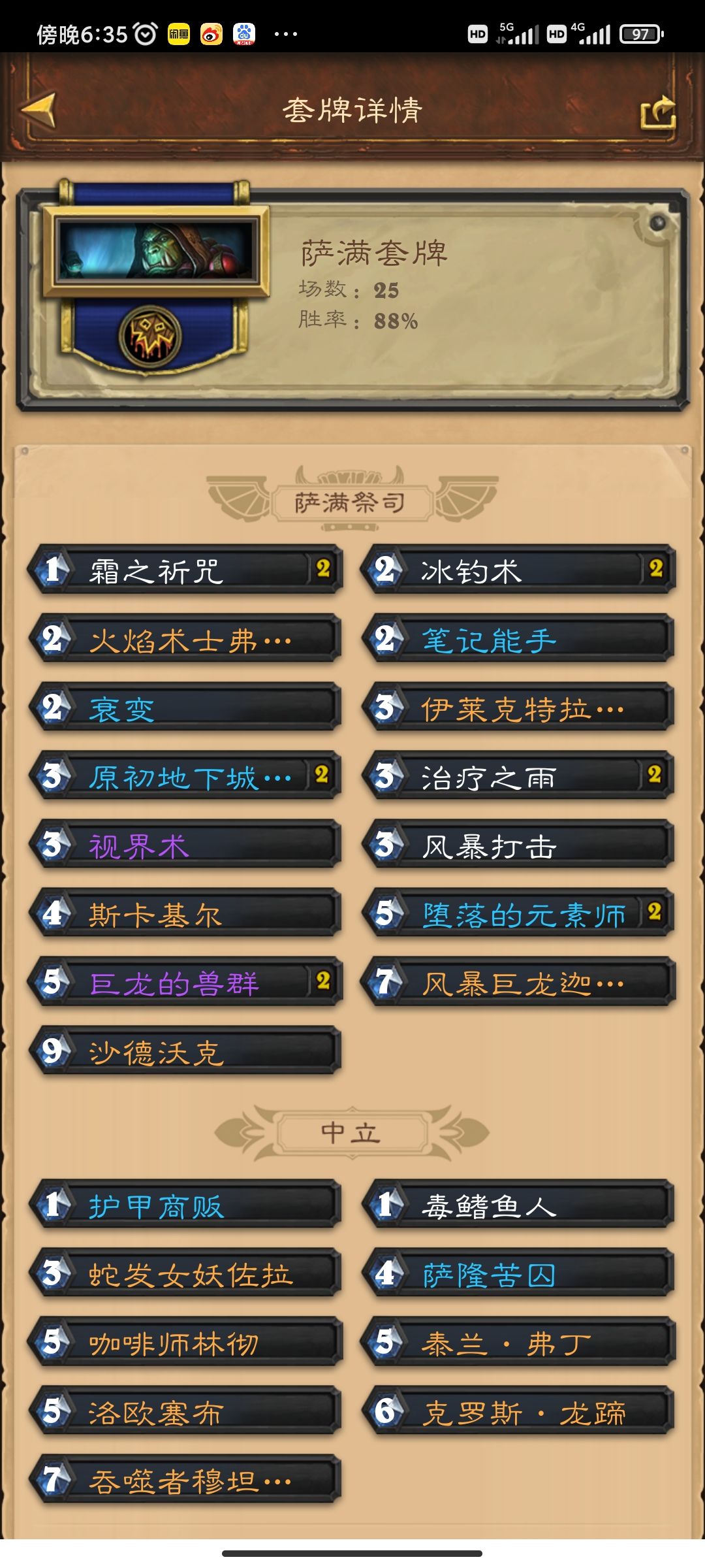 版本末期狂野卡组,战吼jk萨极速低保