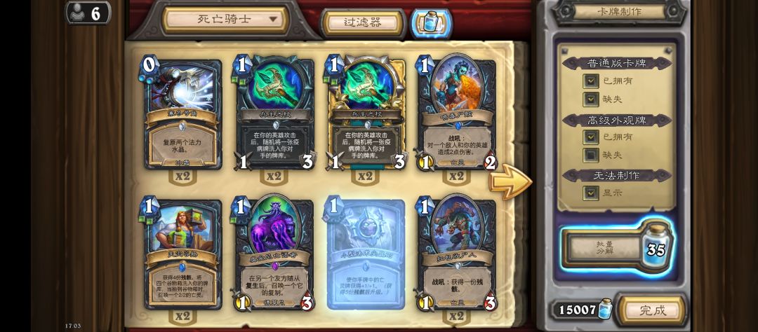 个人零氪目前三职业法师萨满牧师满卡,还有15000尘,截图为证。 1.贪多嚼不烂,只保留自己喜欢的三个职业的卡牌和所有中立卡牌,其他职业的除了游客和游客相关联的一律分了。不犹豫犹豫就是对炉石上万张卡的不尊重。更何况很多职业你从来就不玩。 2,看自己玩标准还是狂野。新人尽量别玩狂野全是百年毒瘤卡组,如果真要玩建议只保留1个狂野职业的全部卡牌其他全分了,因为狂野卡牌数量几百年下来超过你的想象无法集齐。