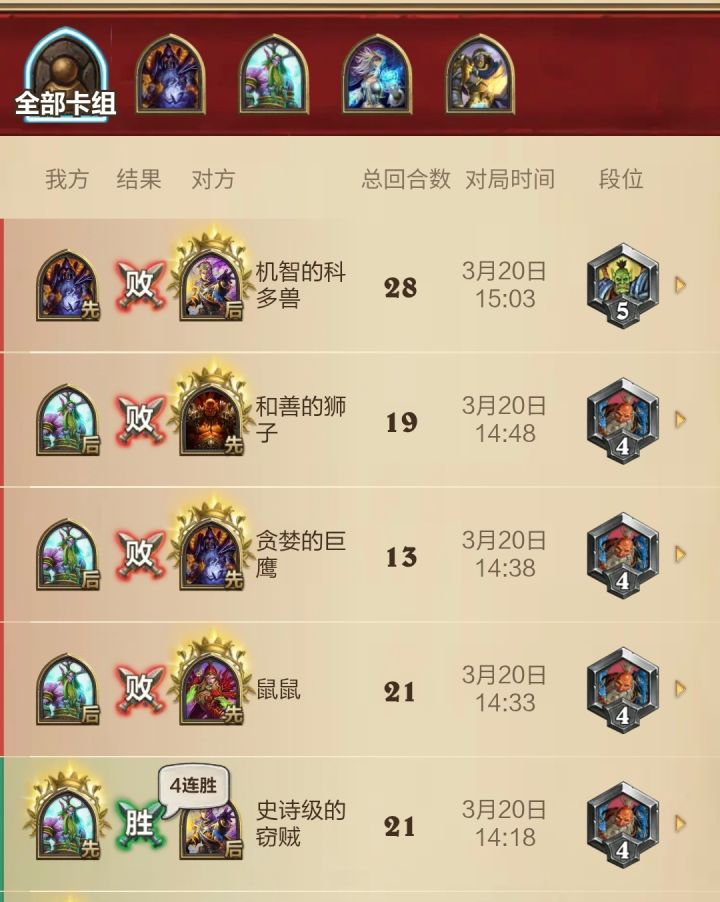之前跟我同事玩儿,我同事好像是玩了一套德鲁伊的龙卡组。他完全是从网上查的攻略,然后我没有看过攻略,我自己组的牌打不过。我就说你这都是复制网上的卡组,然后合成的牌组的卡组没有意义,他说有本事你也找一套,然后我就从一个主播那复制了一了一套猎人的牌,连赢了两局 我觉得这个游戏现在根本就没有人自己组卡动脑子,完全为了上分,从网上找到一套成熟的卡组。然后就顺着卡组玩,没有人自己去研究。
