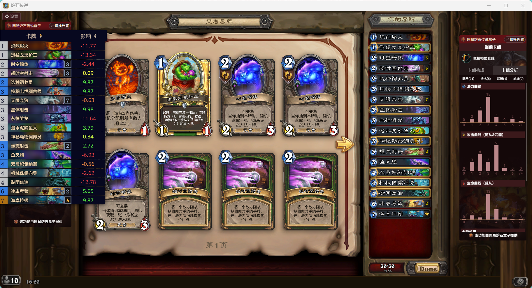新版本,搞了一手弃牌猎,总的来说有强度,但不高,原因有几下几点。首先,完成速度还是有的,平均五到六费完成,正好够下,后迅速补手牌。但是,速度对于现在来说已经算慢的了,最近几个小版本又开始膨胀,很多卡组爆发点已经提到45费了,五费扔个88白板基本没啥用,就像是从前的艾派德蛋,破壳了,但是没人鸟你,只拍脸就如同蛆一样死去了。猎人太缺解牌,根本没有好用的群解,爆炸陷阱那玩意仅限于前三个回合有用,对