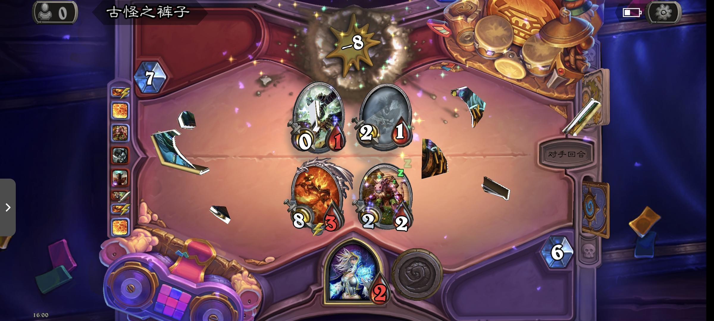 对面气炸了,对面一开始纯白板大海盗,一局打平一局被我打一半血,最面改了下阵容直接爆炸[表情_捂脸哭][表情_捂脸哭][表情_捂脸哭],可惜搜不到瑞文,要不然一地下毒