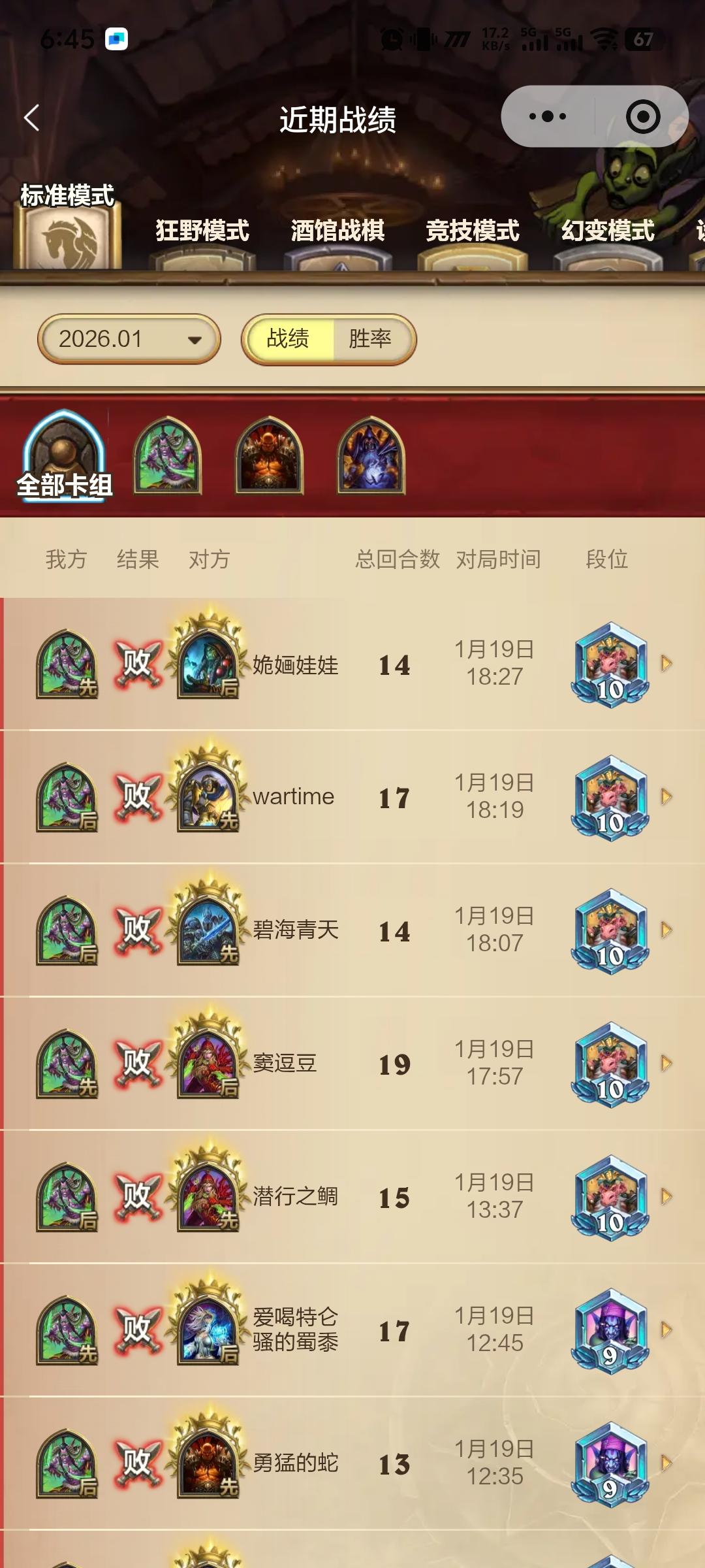 有和我一样的么,酒馆学习成本最低,可以直接上手.陆陆续续完了30个小时了,有点理解玩法了,从以前的懵逼到现在混合型,核心卡组型都有感觉了。也自己摸索了一些,没看直播摸索的1,娜迦的蓝调玩法2,海岛的金币法术玩法3,混合的法术玩法,4,恶魔的养酒馆吞噬玩法5,鱼人手牌玩法,这个也是我最早摸索出来的,最高5000攻6,元素的刷手速玩法7,机械的碰瓷玩法8,亡灵复生和召唤玩法,以及挤爆