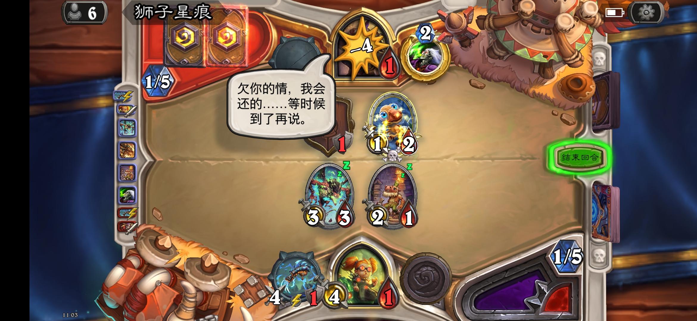 钻石卡末世的姆诺兹多给你两个回合又怎样你没有下个回合了就让你尝尝我钻石卡的厉害只要能回手弃掉的古加尔,利用效果就能将本局弃掉的所有卡回手,包括他自己,而古加尔回手的卡消毫血量而非费用,加上阿迦玛甘使下一张卡消毫对手血量所以You jump,I jump.最后用钻石卡回血续命,扭曲虚空清面板,于是就有这么一套能无限OTK的卡组。