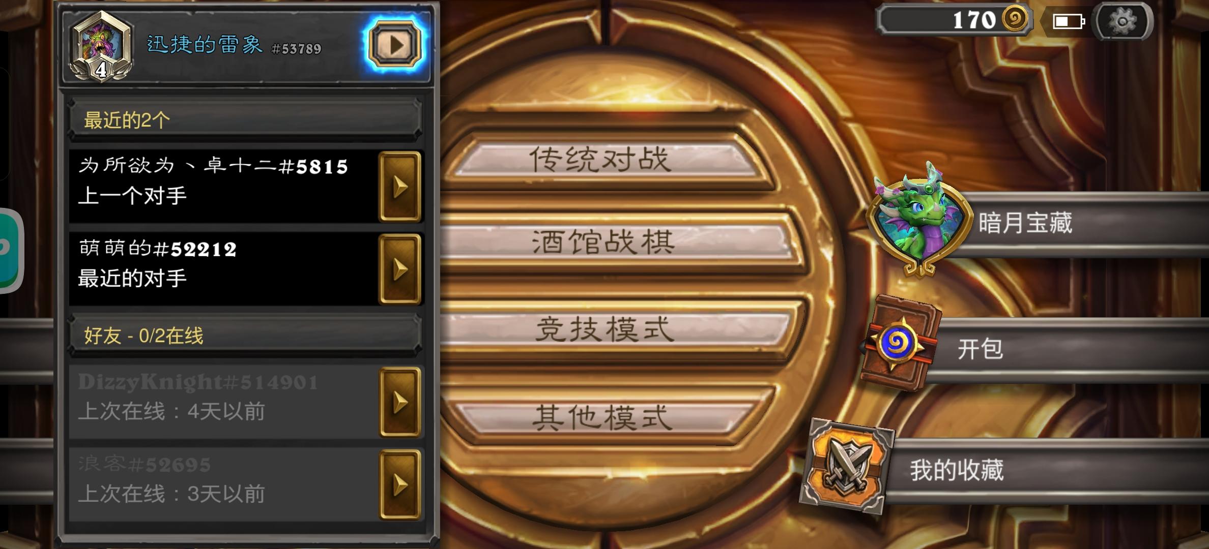 还是喜欢玩宇宙战感谢对面的那位哥们,在黄金三和我打了半个小时。虽然前面的神铜须和牛都没了,偷得也很恶心,好在我是带了走进失落之城任务,任务的奖励首先抽到术士的召唤小鬼和水晶废墟全体5/5虽然中途出现被他复制的僵尸牛差点出事,好在我技高一筹。(PS:不得不说战士的125甲还是挺快的)